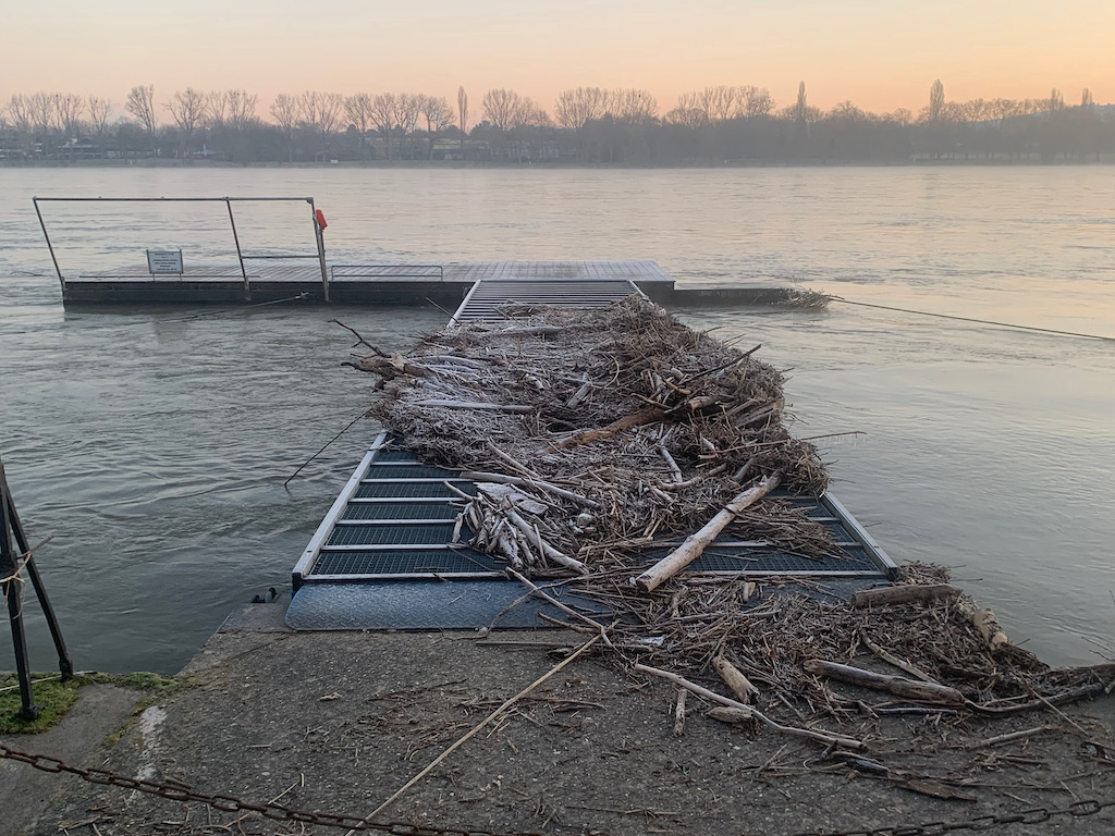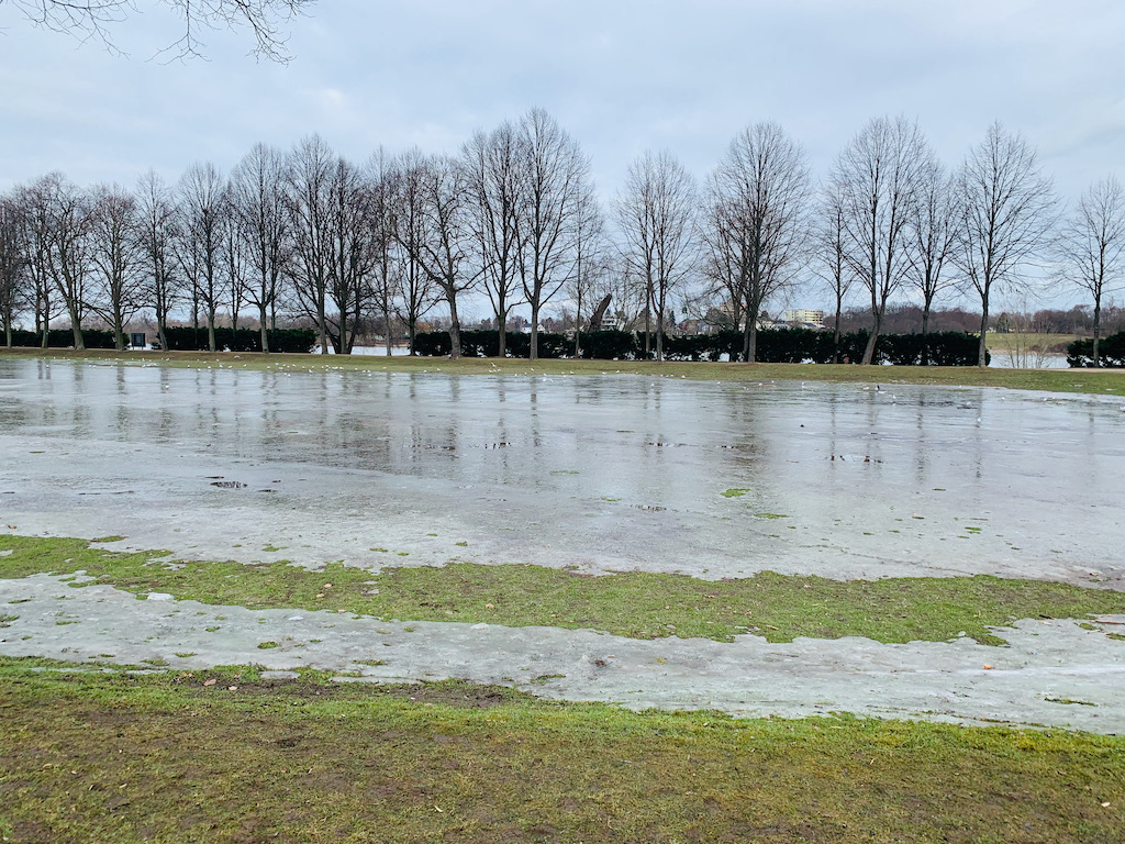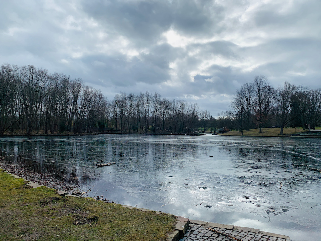 Nach der Eiseskälte vergangener Woche wird es langsam Frühling. Erstmals in diesem Jahr nahm ich das Mittagessen unter freiem Himmel hinter dem Mutterhaus ein, und die Singstarkrähe von gegenüber beschrie abends bei geöffnetem Fenster die Siedlung. Nur der Rheinauenpark ist noch nicht völlig vom Eise befreit.