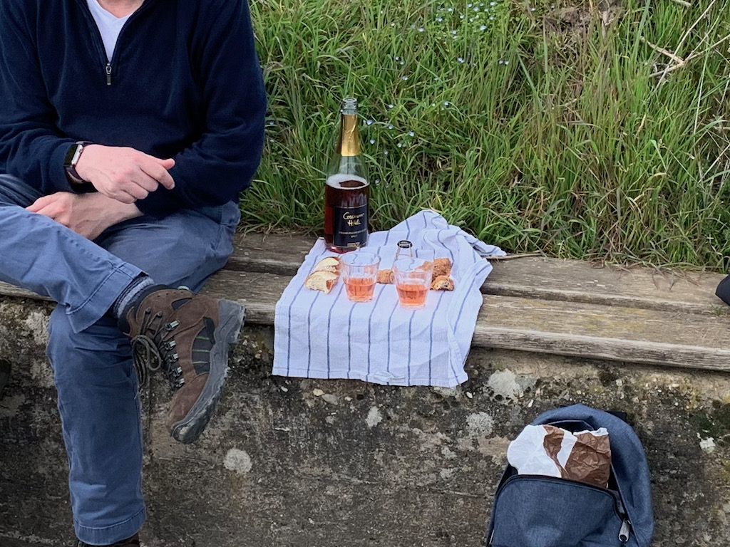 Zum Geburtstag des Liebsten machten wir eine kleine Wanderung im Ahrtal: mit der Ahrtalbahn bis Dernau, dann zu Fuß rechtsahrisch bis Mayschoß, dort bei Sonnenschein die erste Rast. Zurück ging es links der Ahr auf einem Teilstück des Rotweinwanderwegs bis Dernau, wo wir nach zweiter Rast die Rückfahrt antraten. Erkenntnis: Man gelangt sehr zügig von Mayschoß nach Dernau, wenn man unterwegs nicht alle paar Meter von einem Weinausschank aufgehalten wird.