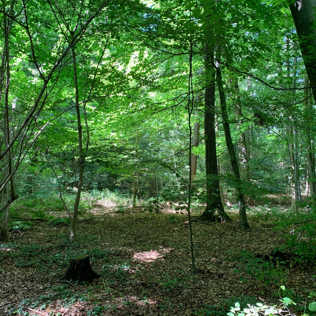 Donnerstag: Inseltag. Da es zum Wandern zu warm war, verbrachte ich den Tag nach Rückkehr aus Porz-Wahn am Lieblingsplatz am Rhein im Schatten der Pappeln. Wobei Schatten übertrieben ist, allenfalls spendeten die Bäume noch Halbschatten, der Boden darunter war von trockenem Laub bedeckt wie Mitte Herbst, minütlich fielen weitere Blätter herab. Mehrfache Ortswechsel waren erforderlich, um einigermaßen unbesonnt zu liegen, da die Sonne stets nach kurzer Zeit wieder eine Lücke im Geäst fand.