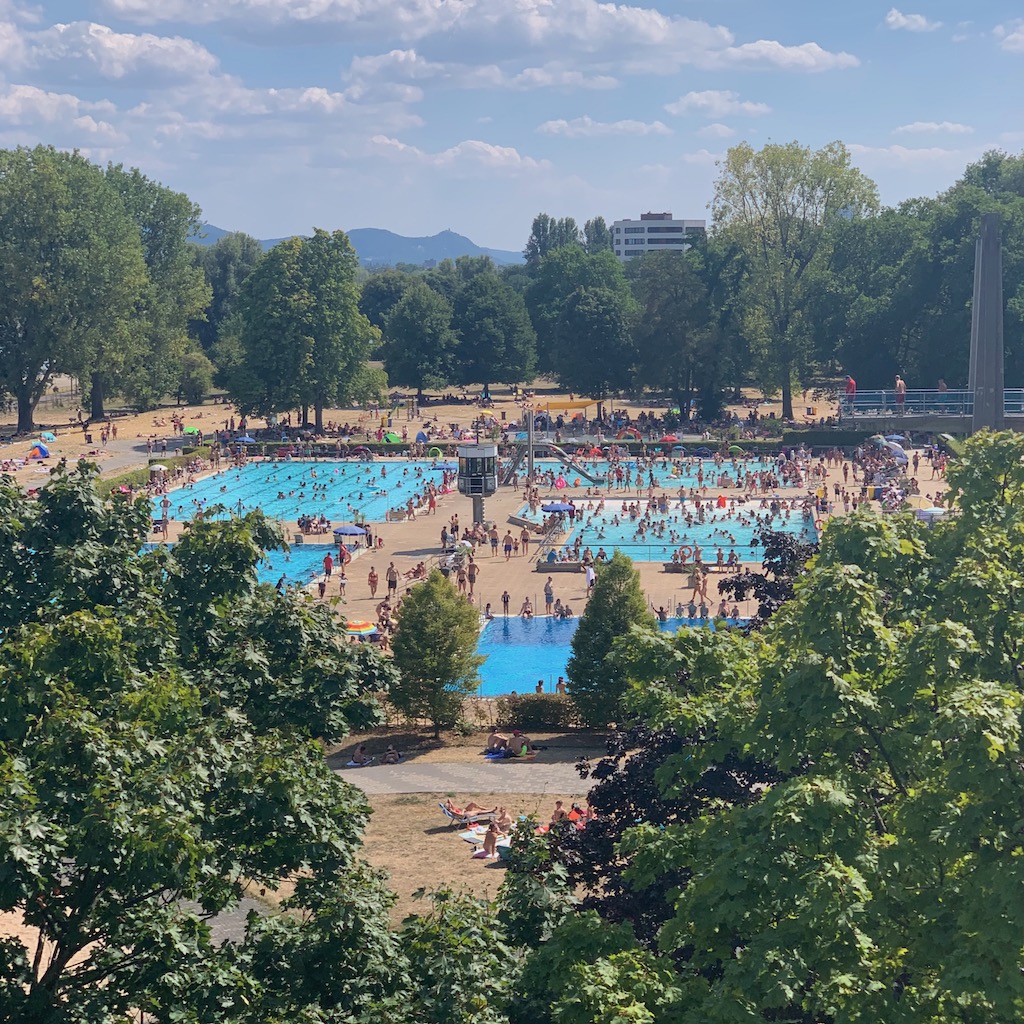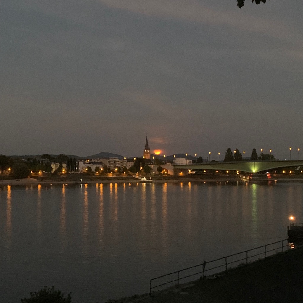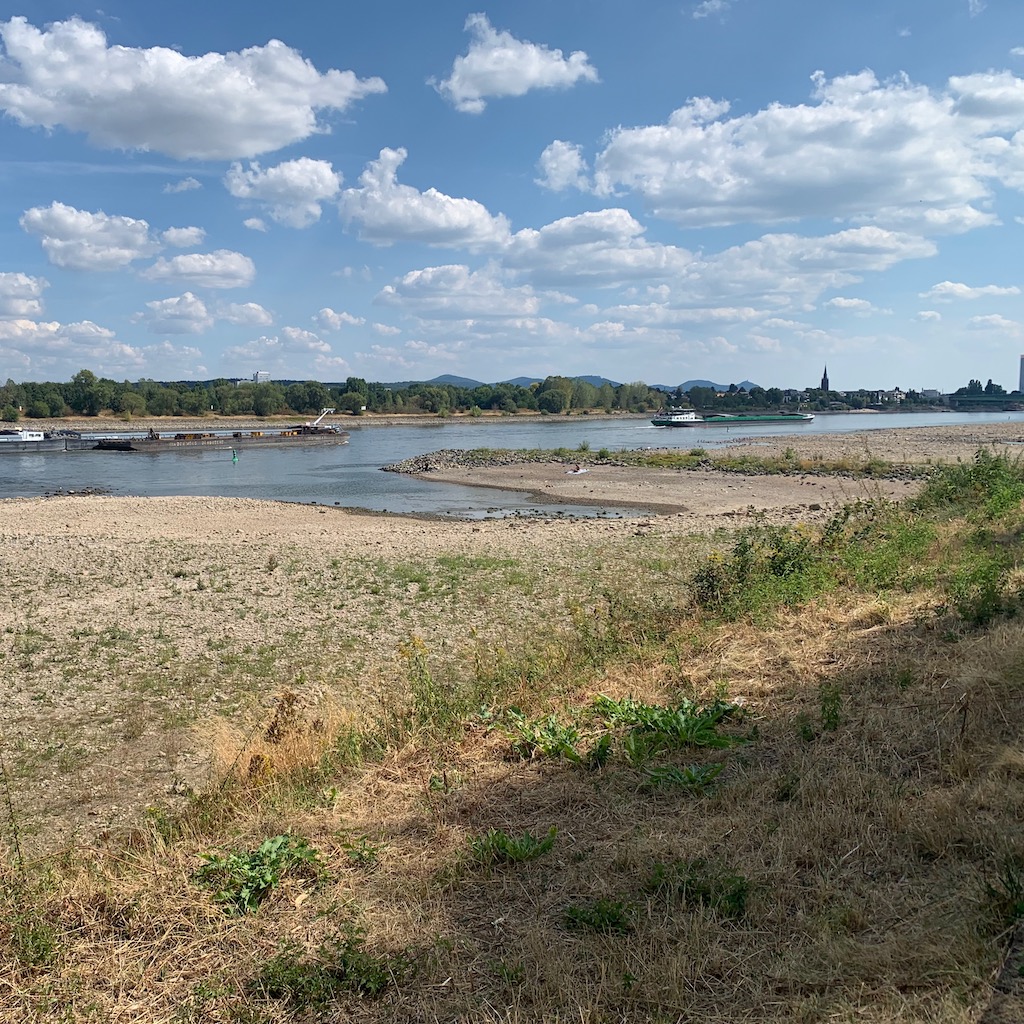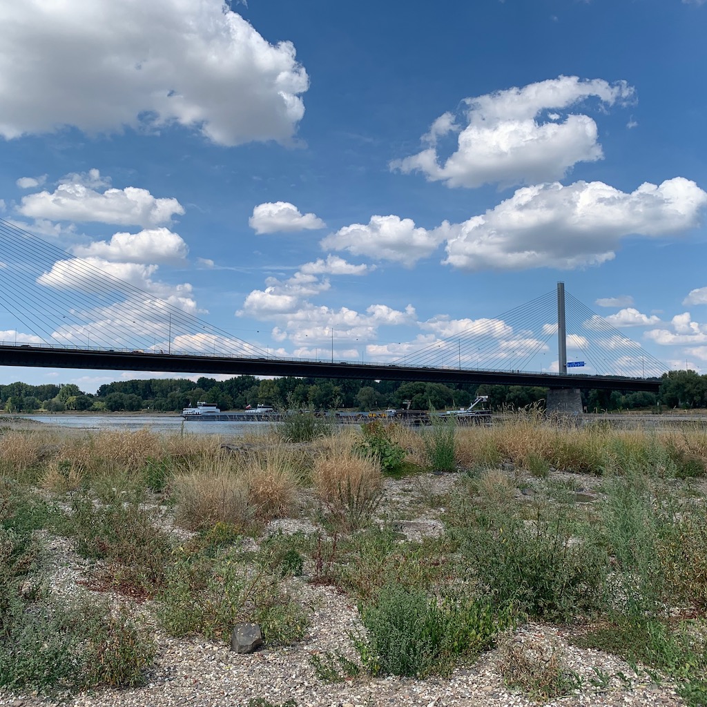Derweil fuhr auf dem Rheinuferweg hinter mir ein Radfahrer vorüber, aus seiner Lärmdose tönte der alte Rudi-Carrell-Hit „Wann wirds mal wieder richtig Sommer“. Ein fragwürdiger Humor.