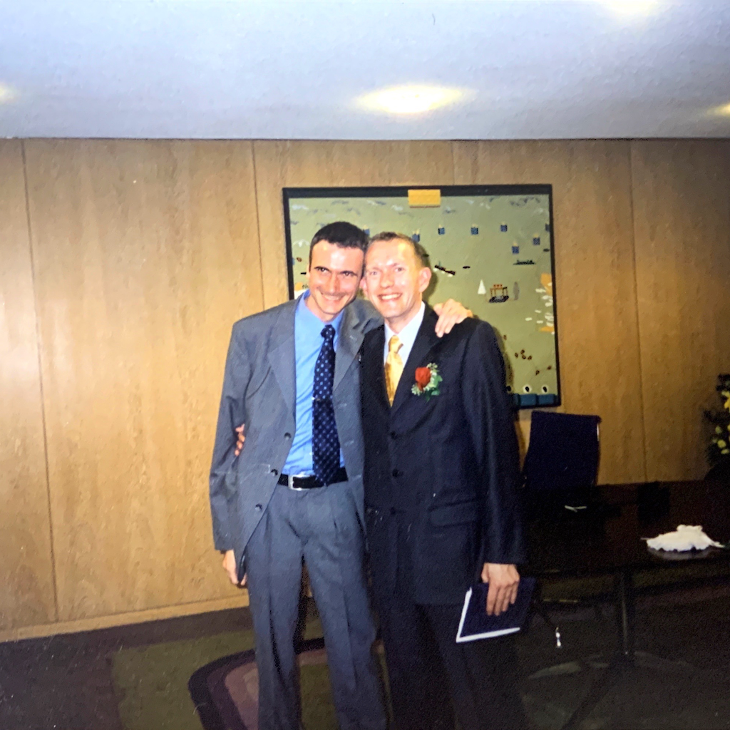 Ebenfalls 2001 beschloss der Deutsche Bundestag das Lebenspartnerschaftsgesetz. Wir durften zwar aufgrund eines verfassungsgerichtlich bestätigten, absurden „Abstandsgebotes“ nicht heiraten, immerhin eine „Eingetragene Lebenspartnerschaft“ eingehen, die alle Pflichten und kaum Rechte der herkömmlichen Ehe zwischen Mann und Frau beinhaltete, insbesondere keinerlei steuerliche Vorteile. Das hielt uns nicht davon ab. Mein Antrag, noch vor dem Umzug in der Dachkammerküche dargebracht, verlief ostwestfälisch knapp und wurde vom Liebsten positiv beschieden, statt mit einem Ring wurde der Beschluss mit Jägermeister besiegelt. Als Termin legten wir einen Tag im Mai des Folgejahres fest, genau der Tag, an dem wir uns fünf Jahre zuvor kennen gelernt hatten.