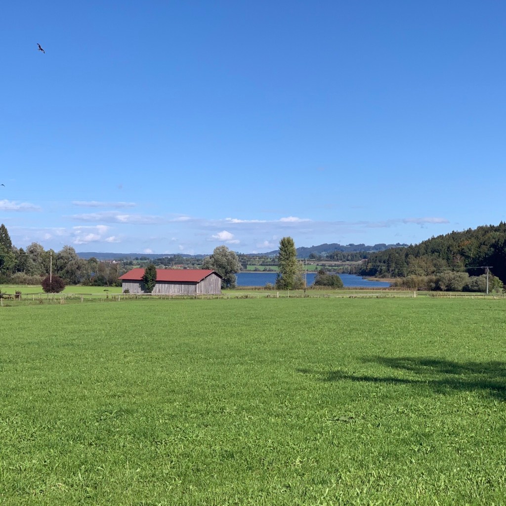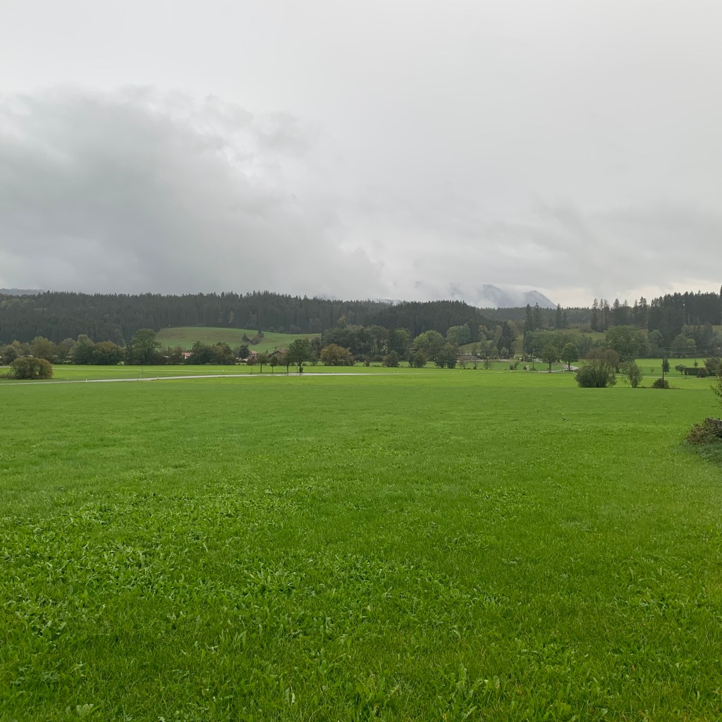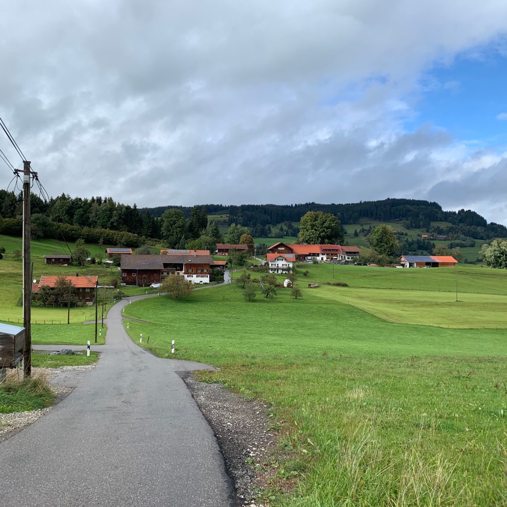 Ab Memmingen nahm ich erstmals trotz verhüllter Nase den regionaltypischen Kuhdungduft wahr und lächelte unter der aktiv getragenen Maske. Sie werden vielleicht zu recht einwerfen, dass die bedenkliche Ausbringung von Gülle Ursache dieser olfaktorischen Empfindung ist. Dem widerspreche ich nicht, möchte damit nur zum Ausdruck bringen, dass genau dieser Geruch für mich untrennbar mit den früheren Familienurlauben verbunden, somit positiv besetzt ist.