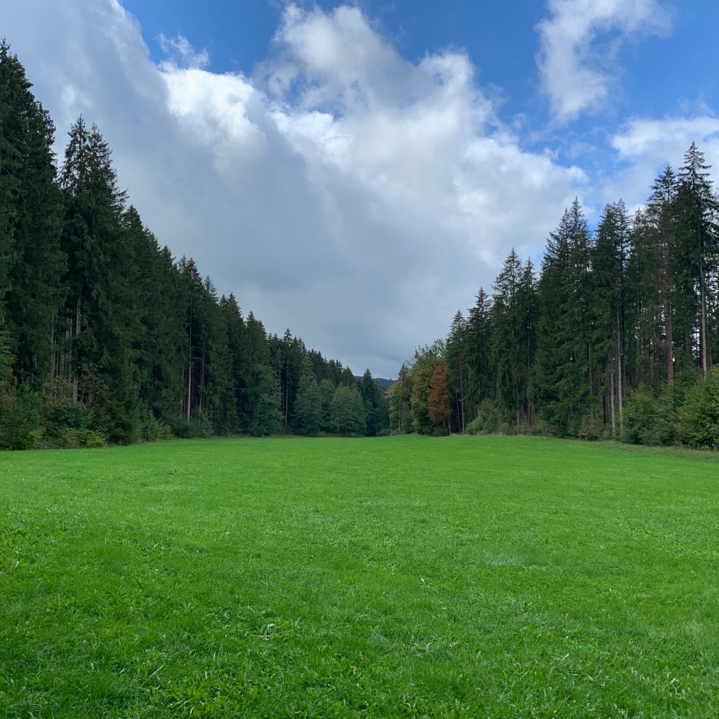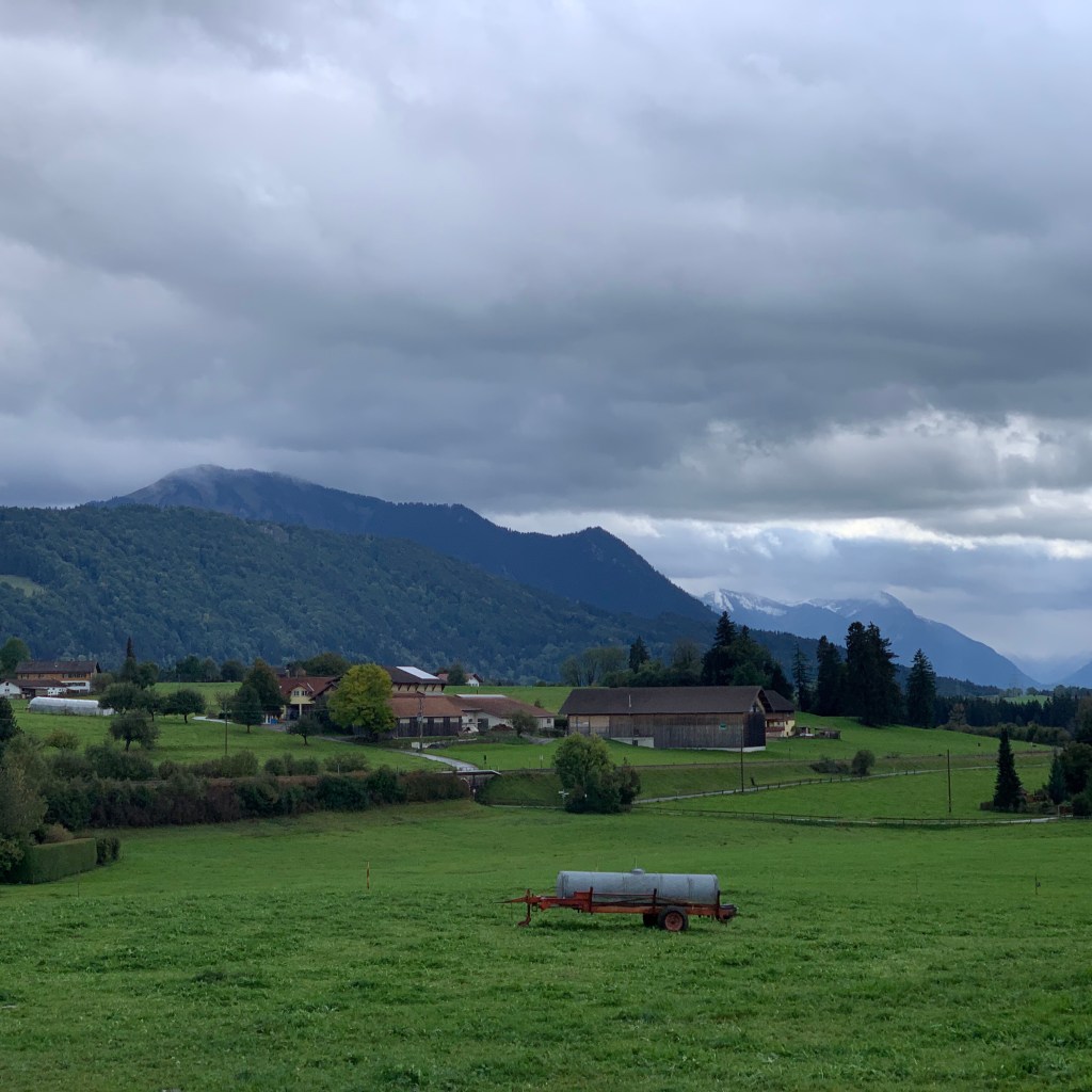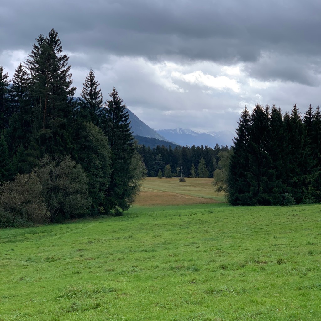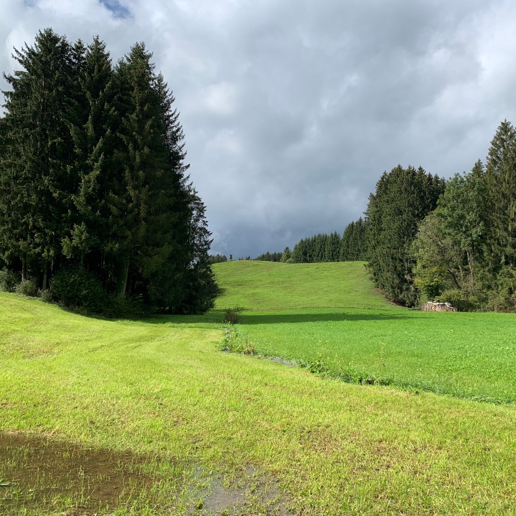 Ab Memmingen nahm ich erstmals trotz verhüllter Nase den regionaltypischen Kuhdungduft wahr und lächelte unter der aktiv getragenen Maske. Sie werden vielleicht zu recht einwerfen, dass die bedenkliche Ausbringung von Gülle Ursache dieser olfaktorischen Empfindung ist. Dem widerspreche ich nicht, möchte damit nur zum Ausdruck bringen, dass genau dieser Geruch für mich untrennbar mit den früheren Familienurlauben verbunden, somit positiv besetzt ist.