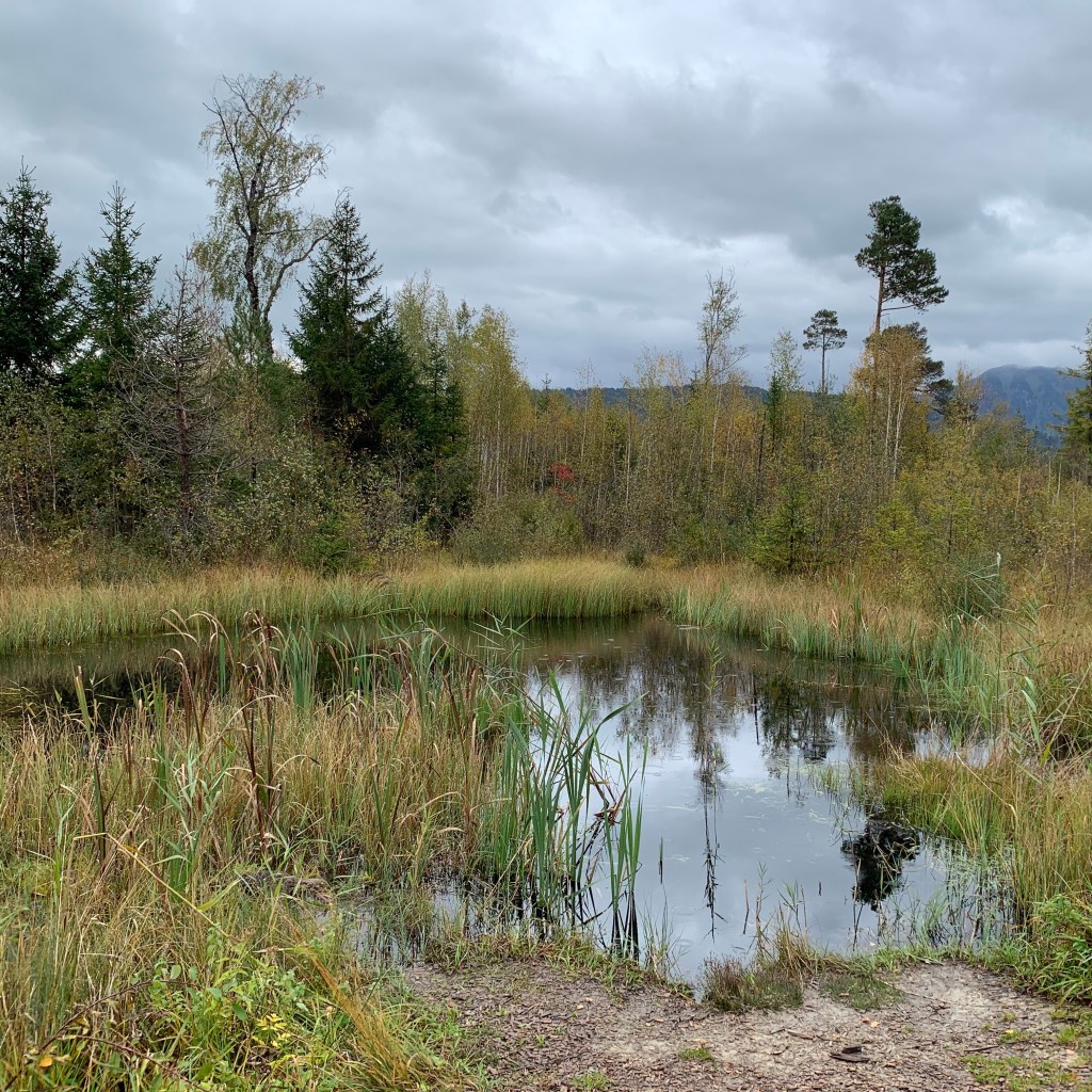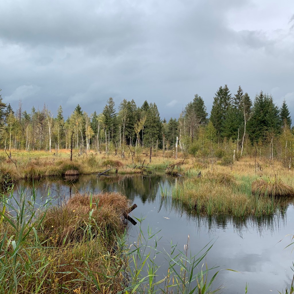 Das Werdensteiner Moos ist ein ehemaliges Torfabbaugebiet, das ab den Neunzigerjahren renaturiert worden ist. Bis dahin war es ein unzugänglicher Wald, so kannte ich es noch aus früheren Urlauben. Heute führt ein Rundweg hindurch, mit Informationstafeln zur Geschichte des Torfabbaues und Natur des Mooses/Moores.