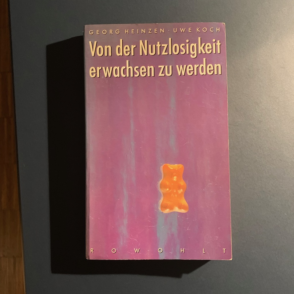 Beendet habe ich auch die Lektüre des Buchs „Von der Nutzlosigkeit erwachsen zu werden“ von Georg Heinzen und Uwe Koch aus dem Jahre 1985, das ich vor längerer Zeit einem öffentlichen Bücherschrank entnahm. Dabei handelt es sich nicht um einen Ratgeber im Sinne von „Auch im fortgeschrittenen Alter jung bleiben“, vielmehr ist es ein Roman und beginnt so: