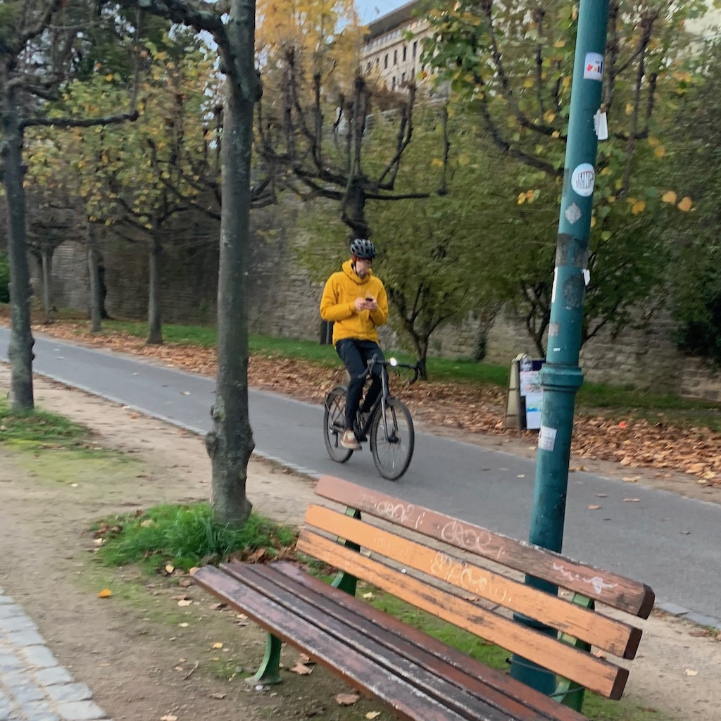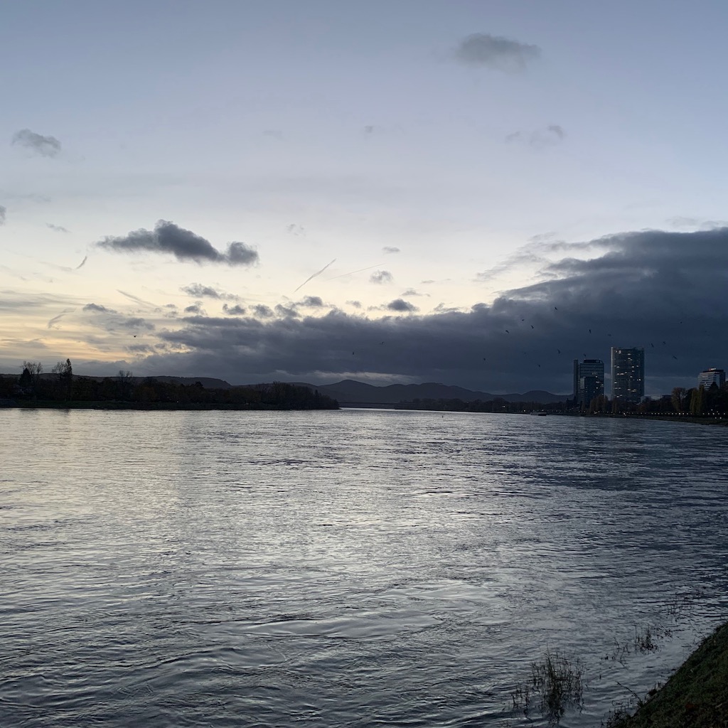 Am Rheinufer kam mir ein jüngeres gemischtes Paar eingehakt entgegen. Wenige Meter vor unserer Begegnung griff sie an die ihr abgewandte Wange ihres Begleiters und zog sein Gesicht zu sich hin, um einen Kuss anzufordern und zu bekommen, keinen langen Knutscher Jungverliebter, sondern einen kurzen Wegekuss. Als wollte sie signalisieren, dass sie bereits vergeben ist. Vielleicht hatte sie mich auch durchschaut und wollte mir zu verstehen geben, dass er vergeben ist. Die Welt ist voller Missgunst.