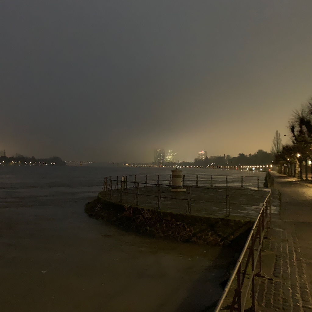 Nach dem Frühstück unternahm ich einen Spaziergang an den Rhein, der im Bonner Norden bereits wieder Teile der Uferpromenade überspült. Für die kommenden Tage ist noch mehr angekündigt.