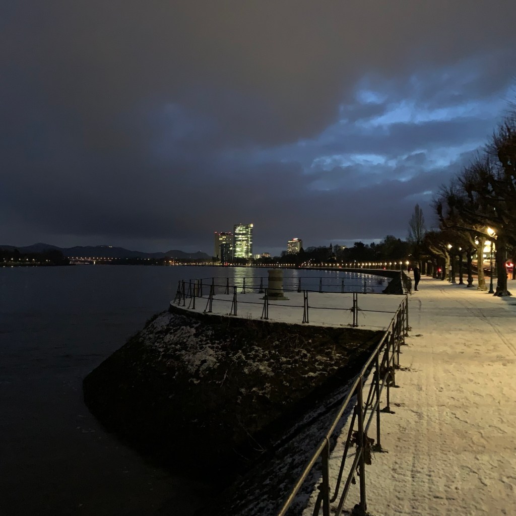 Dienstag: Morgens zu Fuß ins Werk durch fast frühlingshafte Milde. Nur zahlreiche Pfützen entlang der Uferpromenade hatte der Schnee von vorgestern hinterlassen. Einige davon noch komplett vereist, andere direkt daneben bereits verflüssigt. Das als Wunder der Natur zu bezeichnen ist wohl etwas übertrieben, gewundert habe ich mich dennoch.