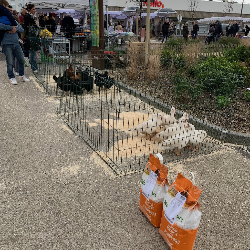 Auf dem Weg dorthin machten wir Halt in Chagny, wo heute Markt war. Neben den üblichen Produkten wie Käse, Obst, Gemüse, Brathähnchen, Billigtextilien und Handyhüllen war an einem erstaunlich gut frequentierten Stand lebendiges Geflügel zu erstehen. Die Tiere wurden einem Gatter entnommen und in einen geräumigen Karton verbracht, der zugeklebt dem Käufer übergeben wurde. Das ließen die Vögel ohne erkennbaren Widerstand über sich ergehen, als hätten Sie mit ihrem Schicksal abgeschlossen. Manchmal ist das ja von allen Optionen die beste.