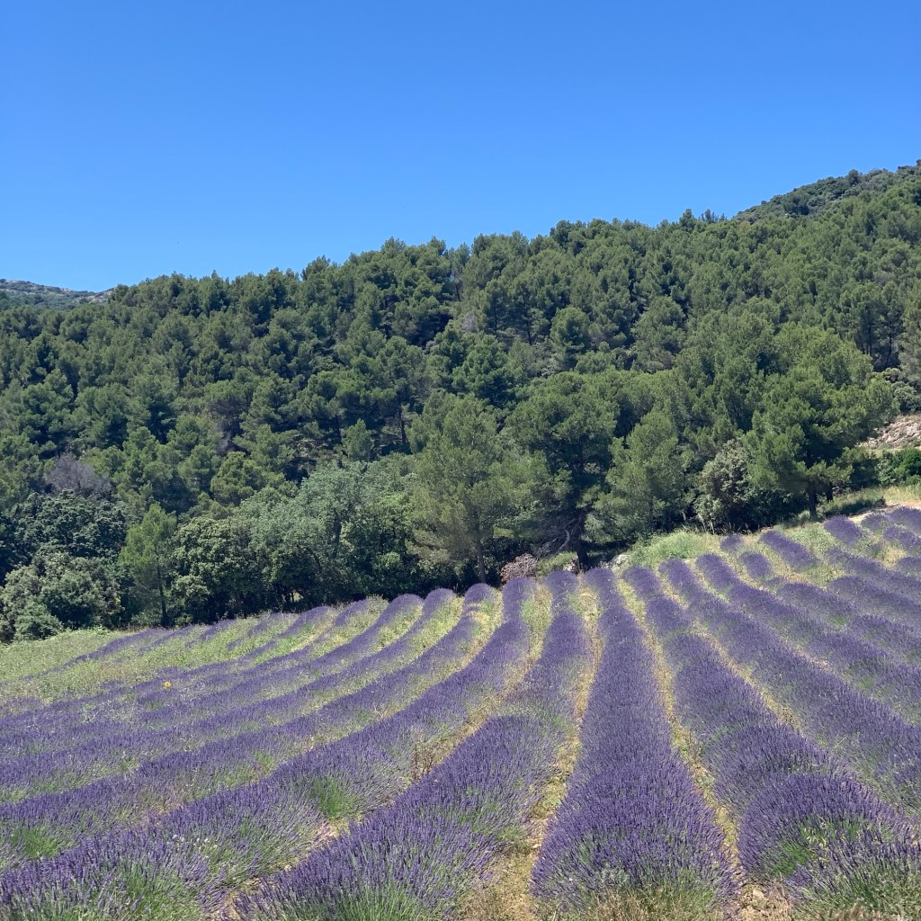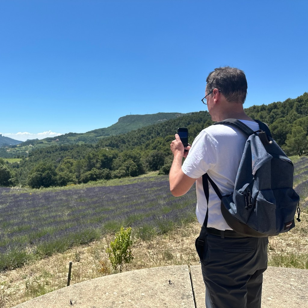 Dienstag: Heute unternahmen wir eine Ausfahrt in Richtung Luberon, zunächst zur als Postkartenmotiv bekannten Abbaye de Sénanque. Auf die Idee waren augenscheinlich auch viele andere Touristen gekommen, es herrschte ein ungewöhnlich hoher Andrang an Menschen und Fahrzeugen, deshalb verzichteten wir auf einen Ausstieg; wir kennen den Ort von früheren Besuchen, sehr viel wird sich seitdem nicht verändert haben.