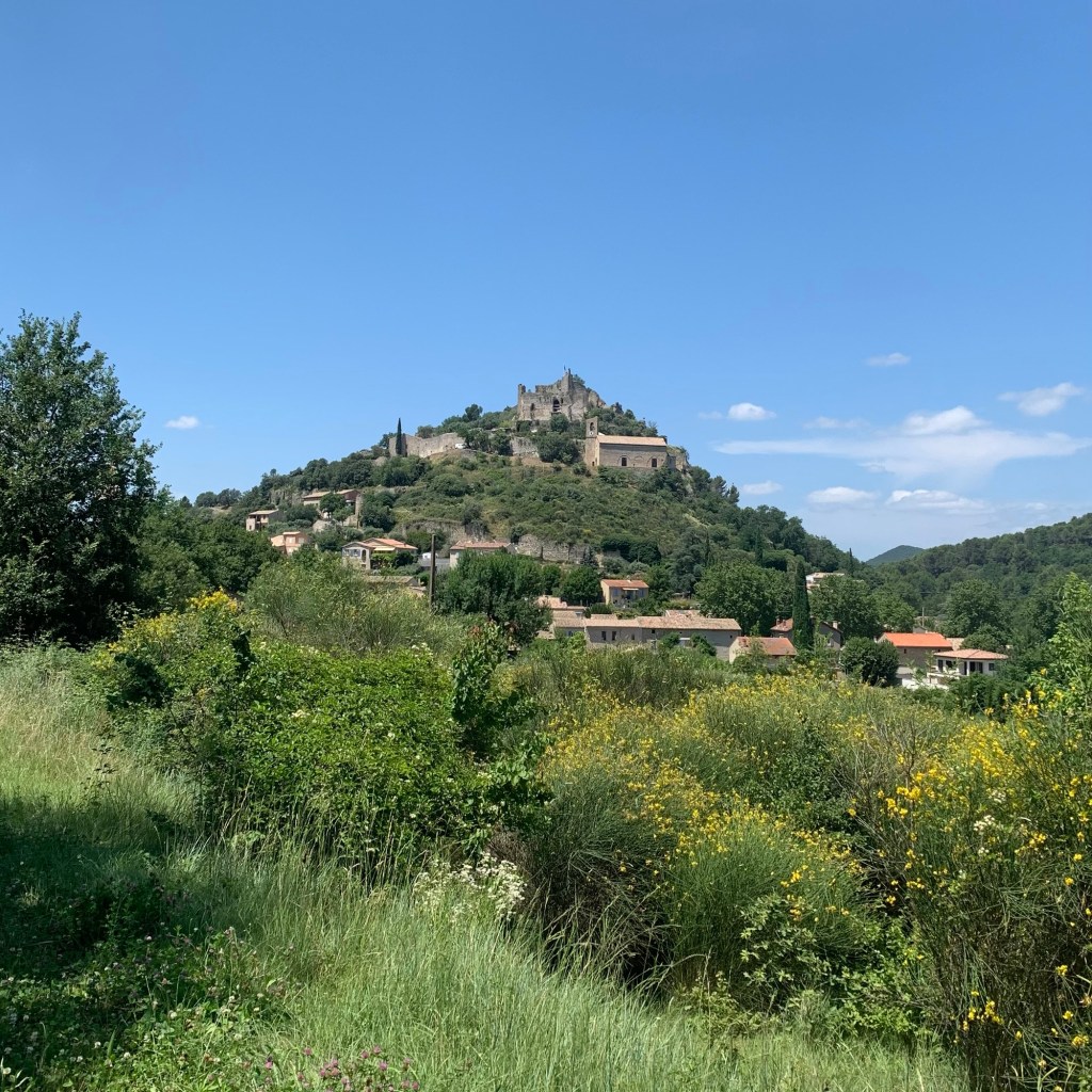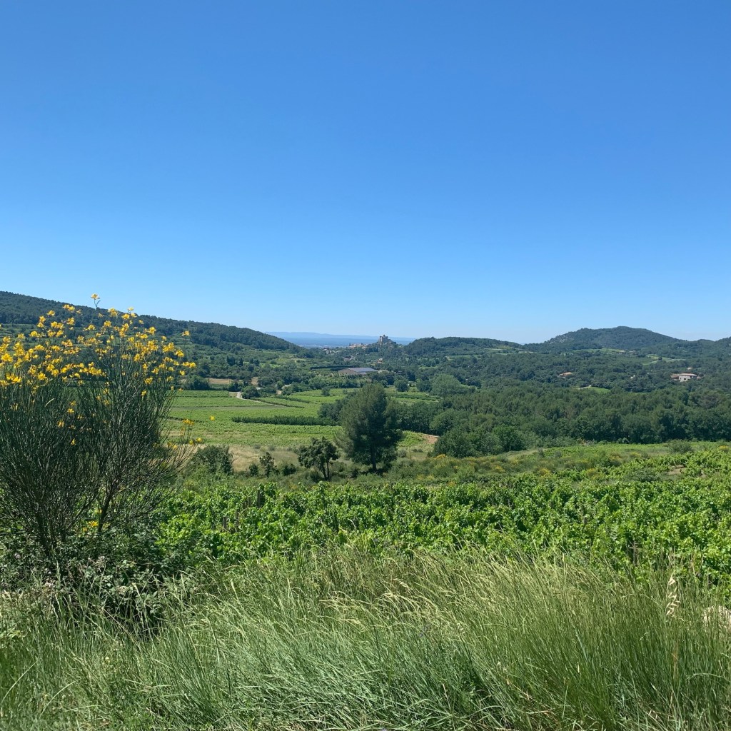 Mittwoch: Das Ende des Urlaubs rückt näher. Nach Besuch des örtlichen Wochenmarktes sowie der Poststelle zum Erwerb von Briefmarken* unternahmen wir die letzte Radtour, morgen geben wir die Räder wieder ab. Diese führte durch den Nachbarort Entrechaux. Bei der Planung der Tour führte uns die Komoot-App gleichsam hinter die Fichte, ein Streckenabschnitt erwies sich als fahrraduntauglicher Waldpfad über groben Schotter, beinahe wäre der Liebste abgeworfen worden. Nach spontaner Umplanung wurde es dennoch ganz schön.