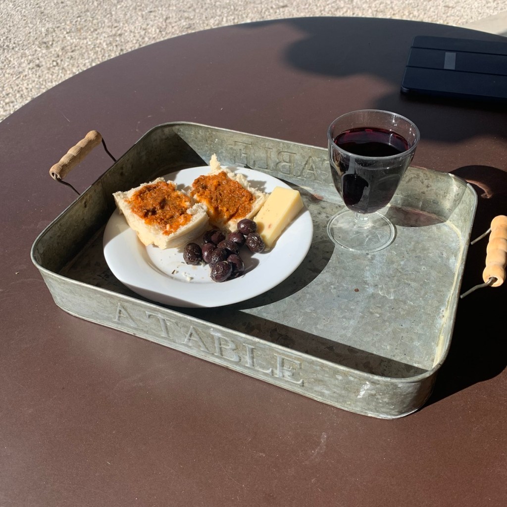 Stimmung und Appetit waren wieder stabil, wie so häufig von Montag auf Dienstag. Mittags gab es einen ganz vorzüglichen Eintopf mit Bohnen und Lammfleisch. Danach ein kurzer Spaziergang mit dem Kollegen durch den Park.