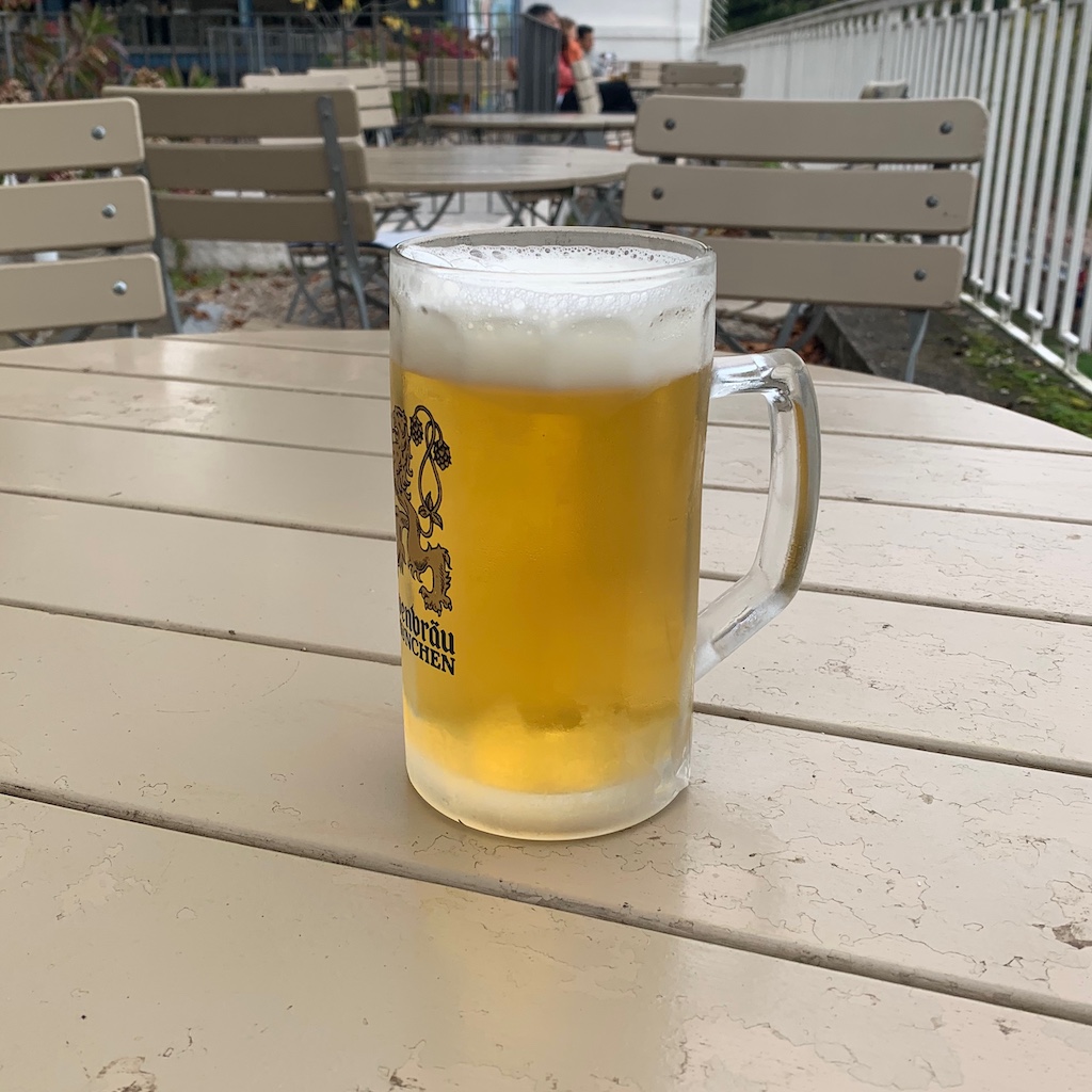 Zwischendurch stellte Komoot meine Pfadfinderfähigkeiten auf die Probe, als es mich über Wege leitete, die als solche nicht unmittelbar zu erkennen waren, und über einen Bachlauf, den zu überwinden nur mit einem Fußbad möglich gewesen wäre. Wobei den Füßen etwas Kühlung vielleicht ganz gut getan hätte, denn die Wanderlust war getrübt: Schon morgens beim Anziehen der Schuhe kamen sie mir sehr eng vor, vor allem der linke. Da sowohl Schuhe als auch Füße dieselben waren wie bei den letzten Wanderungen, hoffte ich, dass es sich bald fügt. Während der ersten Kilometer ging es auch ganz gut, dann begann der linke Zeigezeh zu schmerzen, erst leicht, mit jedem Kilometer mehr. Ich hielt durch, nach immerhin gut zwanzig Kilometern endete die Wanderung an der ersten erreichbaren Straßenbahnhaltestelle statt bei der vorgesehenen Gaststätte in der Innenstadt. Dorthin brachte mich dann die Straßenbahn, wo ich mich, mittlerweile Tradition, für die Mühen und Schmerzen mit Currywurst und Hellbier belohnte. Spätestens da ließ der Schmerz nach.