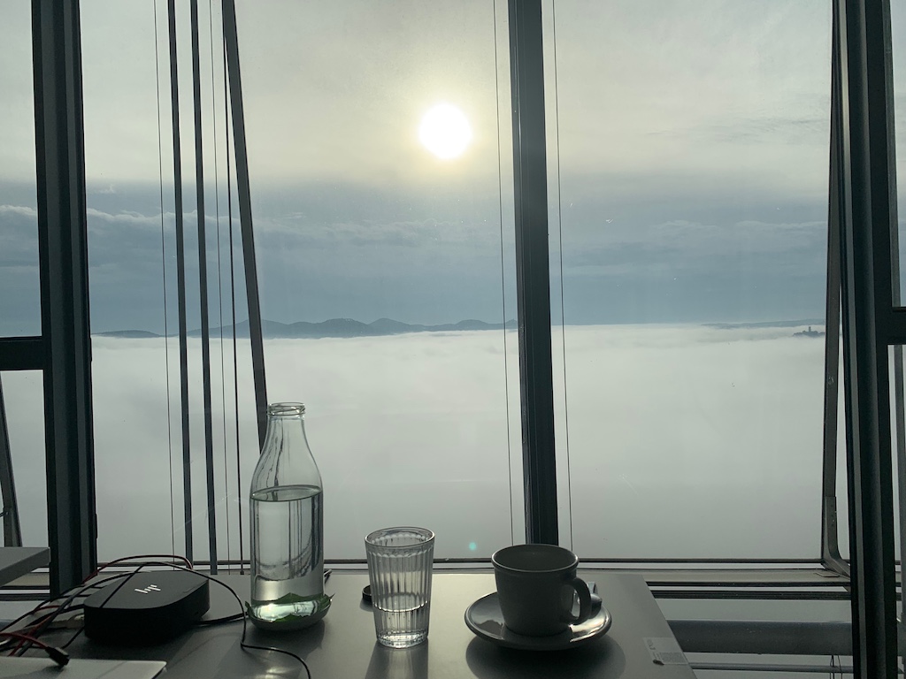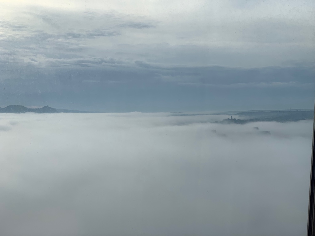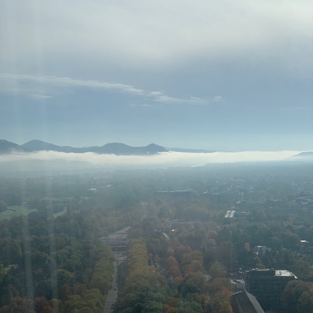 Morgens auf dem Fahrrad war es wieder handkalt, kühler als an den Vortagen; neben Handschuhen sollte ich auch die Helmunterziehmütze bald mal suchen. Das ist nicht als Klage zu lesen, immerhin ist der November nicht mehr fern, der Dreimonatswandkalender im Büro deutlich dünner geworden. Morgens bis zum Mittag schaute ich vom Schreibtisch aus wieder über eine geschlossene Wolkendecke, wie bereits am vergangenen Freitag berichtet und bebildert, bei Bedarf schauen Sie bitte dort nach.