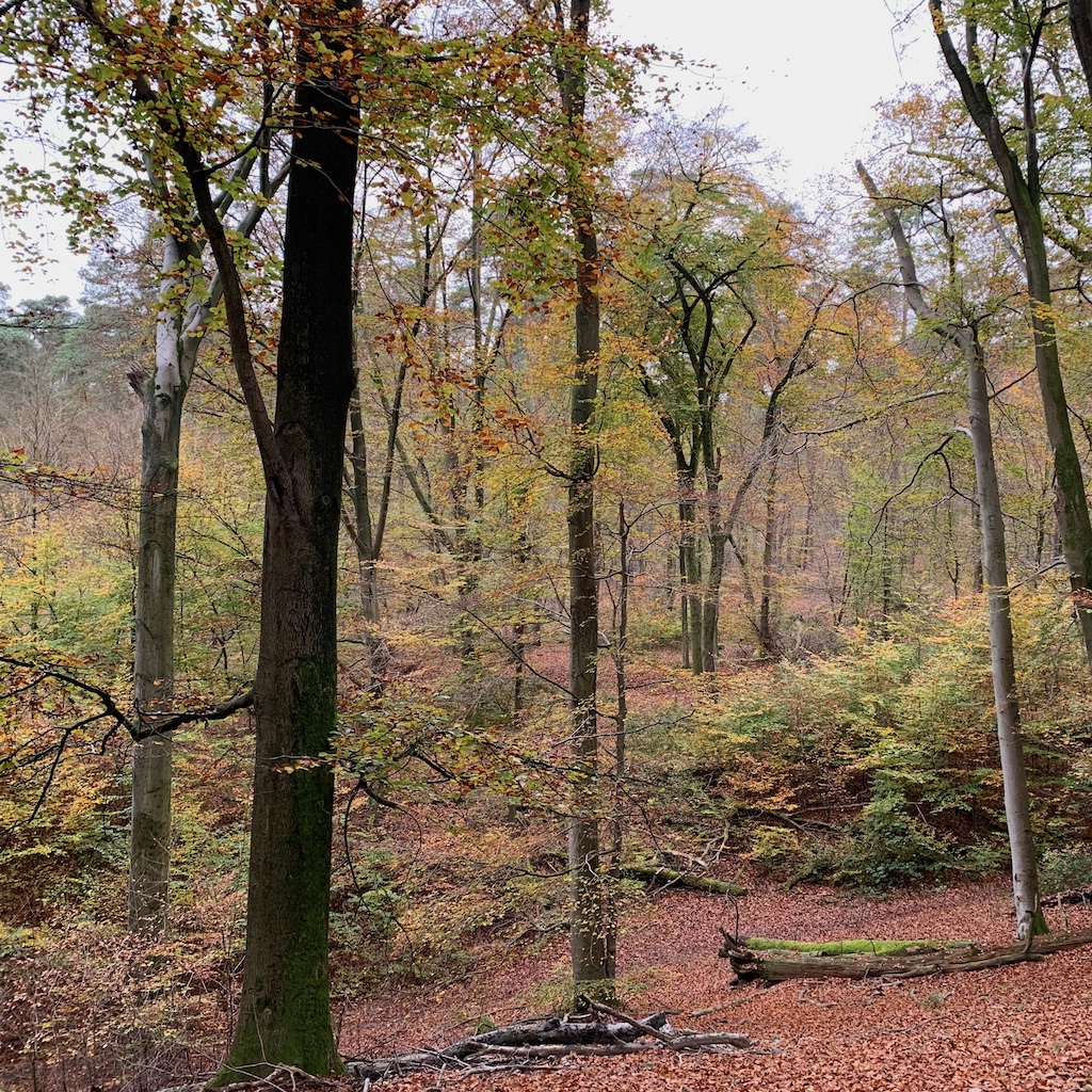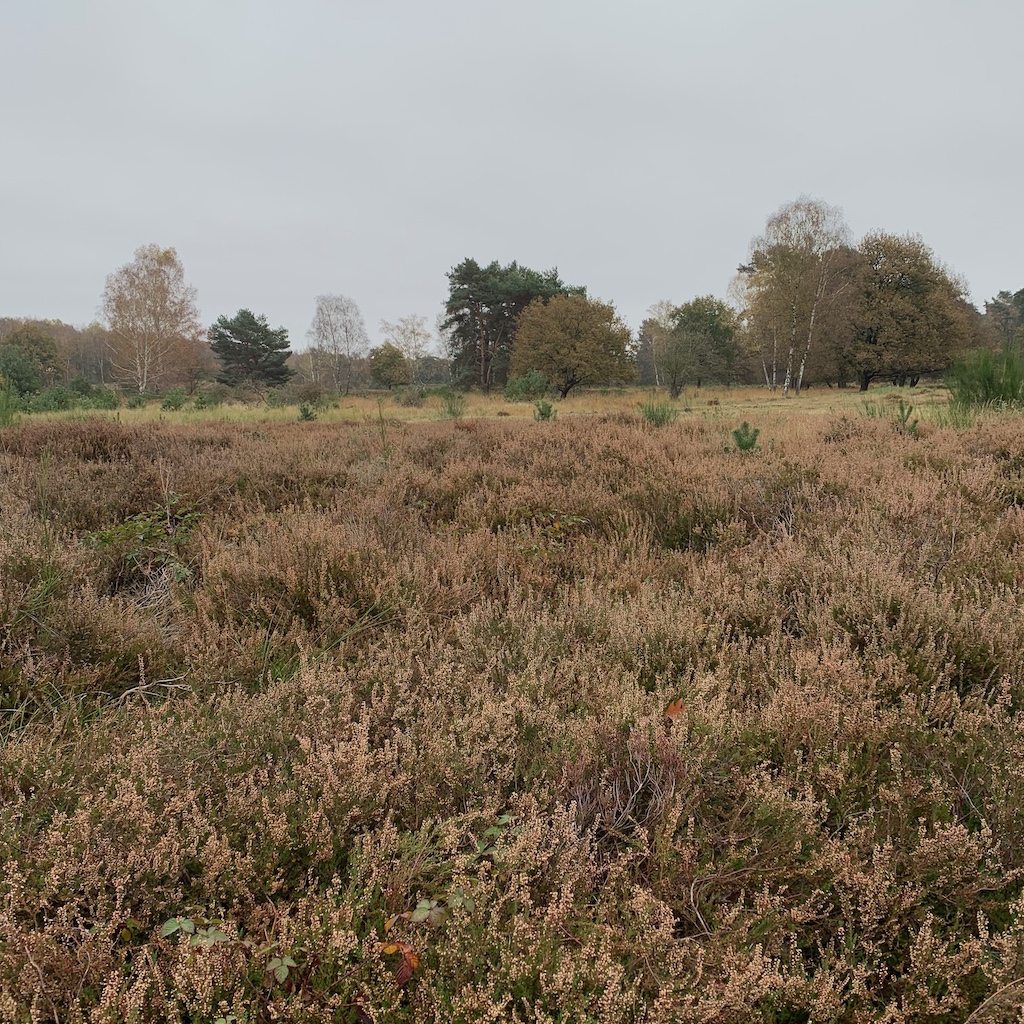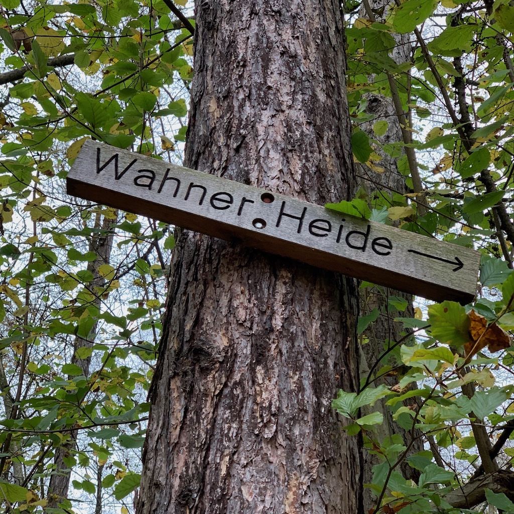 Wie bereits angedeutet hatte ich heute frei. Den Inseltag nutzte ich für eine Wanderung durch die Wahner Heide, eines meiner liebsten Wandergebiete in näherer Umgebung mit vielfältiger Landschaft. Morgens spazierte ich zunächst über den Rhein nach Beuel, wo ich in einer Bäckerei frühstückte, danach weiter zum Beueler Bahnhof. Von dort brachte mich die Bahn (pünktlich, man muss es erwähnen) innerhalb weniger Minuten nach Troisdorf, dem Ausgangs- und Endpunkt der Wanderung. Sie führte im Uhrzeigersinn durch die südliche Heide mit Überquerung des Fliegen- und des Güldenbergs, wobei die Bezeichnung „Berg“ für diese leichten Erhebungen ein wenig übertrieben ist. Aus den geplanten knapp fünfzehn wurden gut neunzehn Kilometer, wegen bewusster Abweichung von der Planroute, einmal führte mich Komoot hinter die Fichte bzw. Buche, einmal verpasste ich eine Abzweigung. Alles überhaupt nicht schlimm, im Gegenteil, das Wanderglück war trotz durchgehendem Hochnebel ungetrübt. Auch die neuen Wanderschuhe bewährten sich bestens.