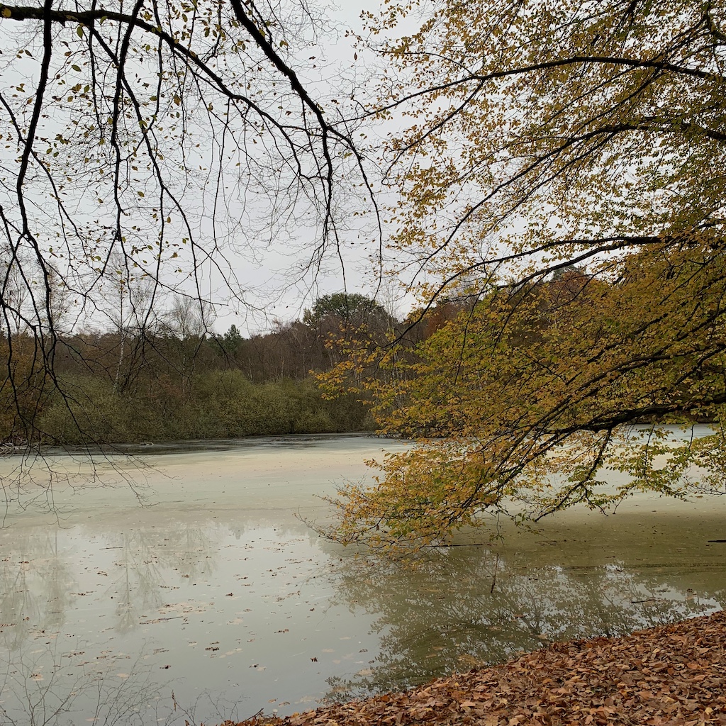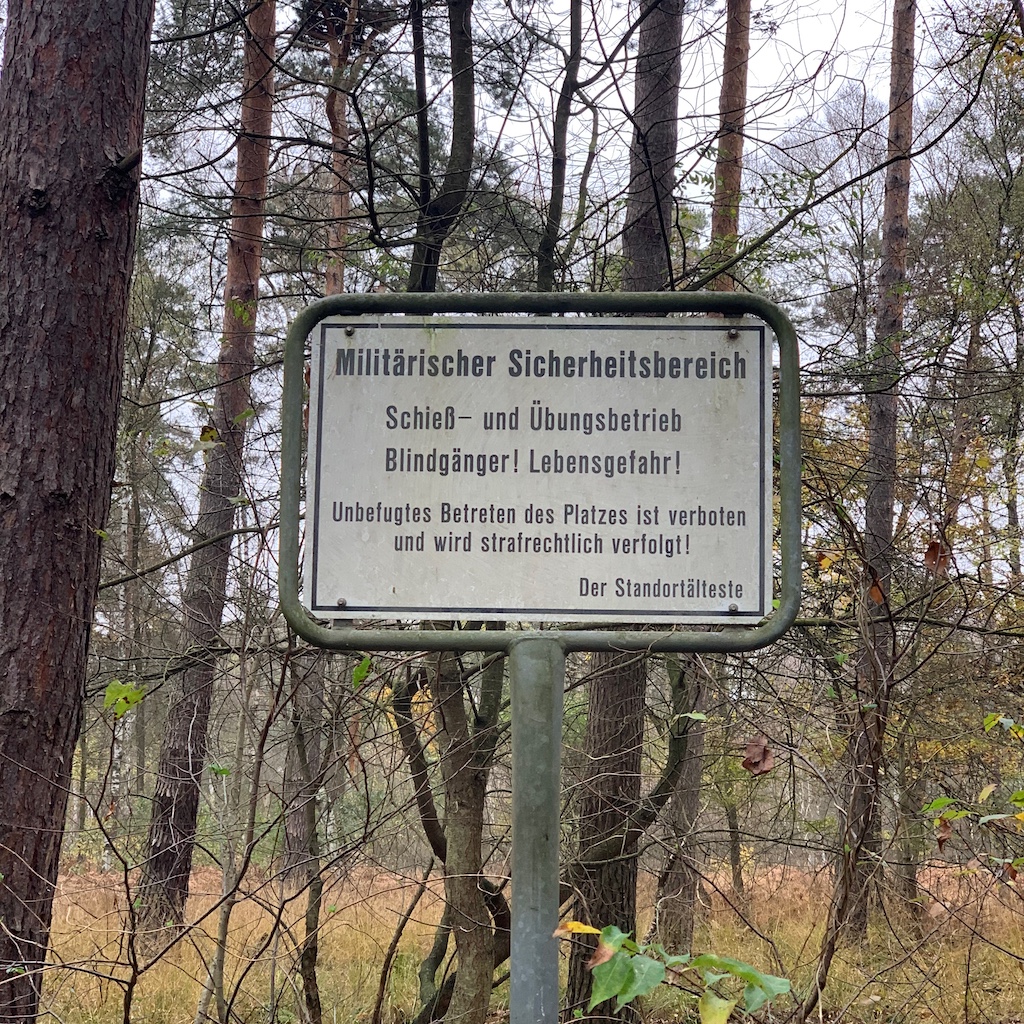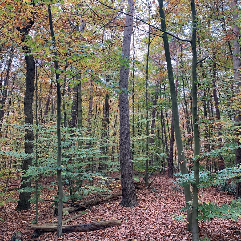 Wie bereits angedeutet hatte ich heute frei. Den Inseltag nutzte ich für eine Wanderung durch die Wahner Heide, eines meiner liebsten Wandergebiete in näherer Umgebung mit vielfältiger Landschaft. Morgens spazierte ich zunächst über den Rhein nach Beuel, wo ich in einer Bäckerei frühstückte, danach weiter zum Beueler Bahnhof. Von dort brachte mich die Bahn (pünktlich, man muss es erwähnen) innerhalb weniger Minuten nach Troisdorf, dem Ausgangs- und Endpunkt der Wanderung. Sie führte im Uhrzeigersinn durch die südliche Heide mit Überquerung des Fliegen- und des Güldenbergs, wobei die Bezeichnung „Berg“ für diese leichten Erhebungen ein wenig übertrieben ist. Aus den geplanten knapp fünfzehn wurden gut neunzehn Kilometer, wegen bewusster Abweichung von der Planroute, einmal führte mich Komoot hinter die Fichte bzw. Buche, einmal verpasste ich eine Abzweigung. Alles überhaupt nicht schlimm, im Gegenteil, das Wanderglück war trotz durchgehendem Hochnebel ungetrübt. Auch die neuen Wanderschuhe bewährten sich bestens.