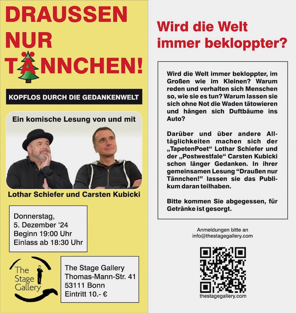 Für die Lektüre der Sonntagszeitung blieb keine Zeit, da ich bereits eine Stunde nach Rückkehr vom Auftritt nach Beuel aufbrach zur Lesung der TapetenPoeten. Wegen Ausfalls einer Teilnehmerin war ich gestern angefragt worden, ob ich lesend aushelfen könnte. Da hilft man doch gerne.