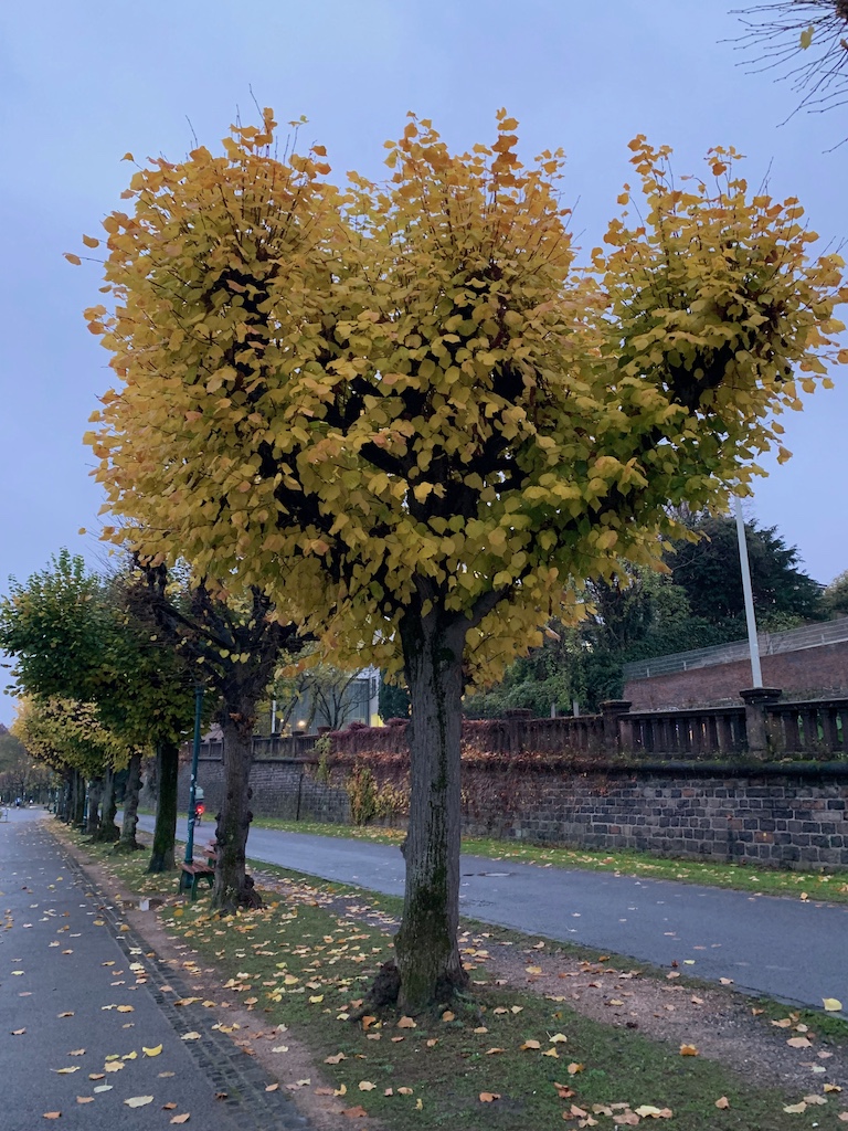 Montag: Es ist deutlich kühler geworden, auf dem Fahrrad trug ich erstmals wieder Handschuhe und Helmunterziehmütze. Vormittags umhüllte Nebel die Umgebung, in mir sah es kaum anders aus, nicht nur in der ersten Tageshälfte. Gegen Mittag setzte sich die Sonne durch, sie ließ das verbliebene Herbstlaub im Rheinauenpark bunt leuchten, bitte denken Sie sich entsprechende Bilder. Wobei viele Bäume noch weitgehend grün sind, während andere das Laub bereits vollständig abgeworfen haben, auf dass es von städtischen Laubblas-Monstern mit Getöse zu langen Haufen zusammengepustet werde. Insofern weisen die Bäume Ähnlichkeit mit Männern auf: Die einen haben mit sechzig noch volles Haar, von einzelnen Silberfädchen durchzogen, andere sind mit vierzig schon kahl.