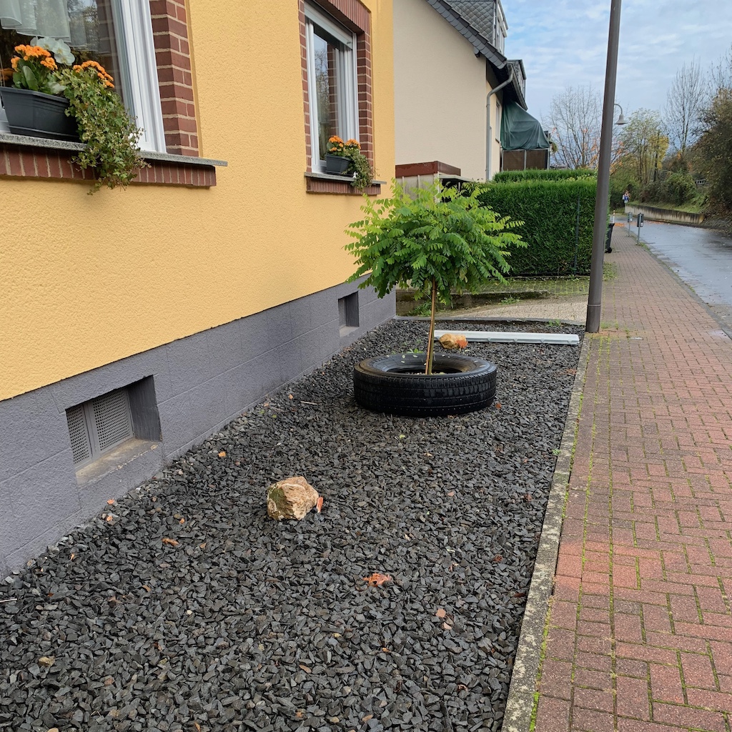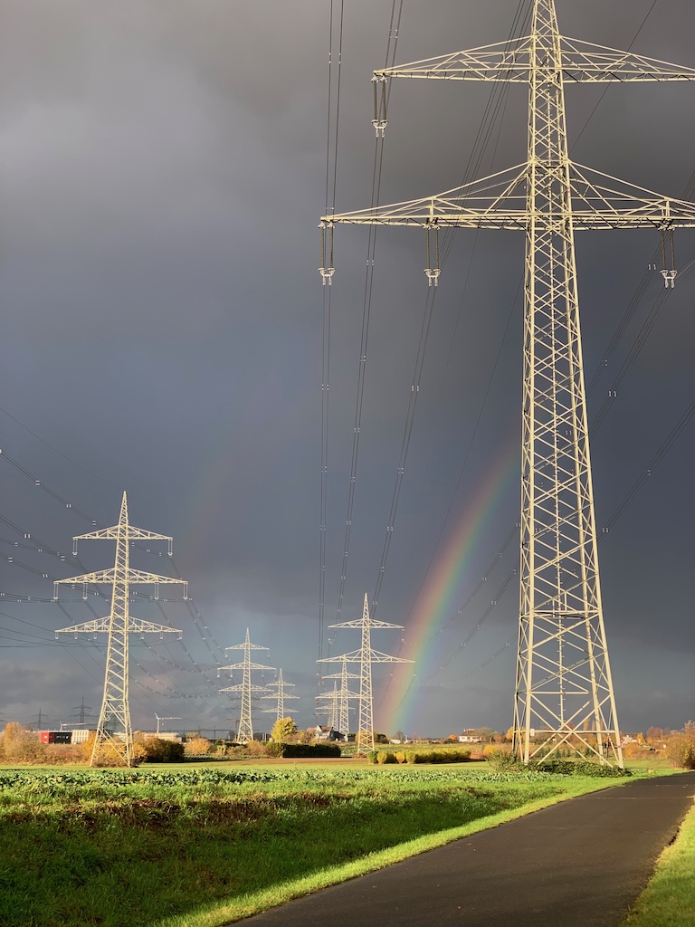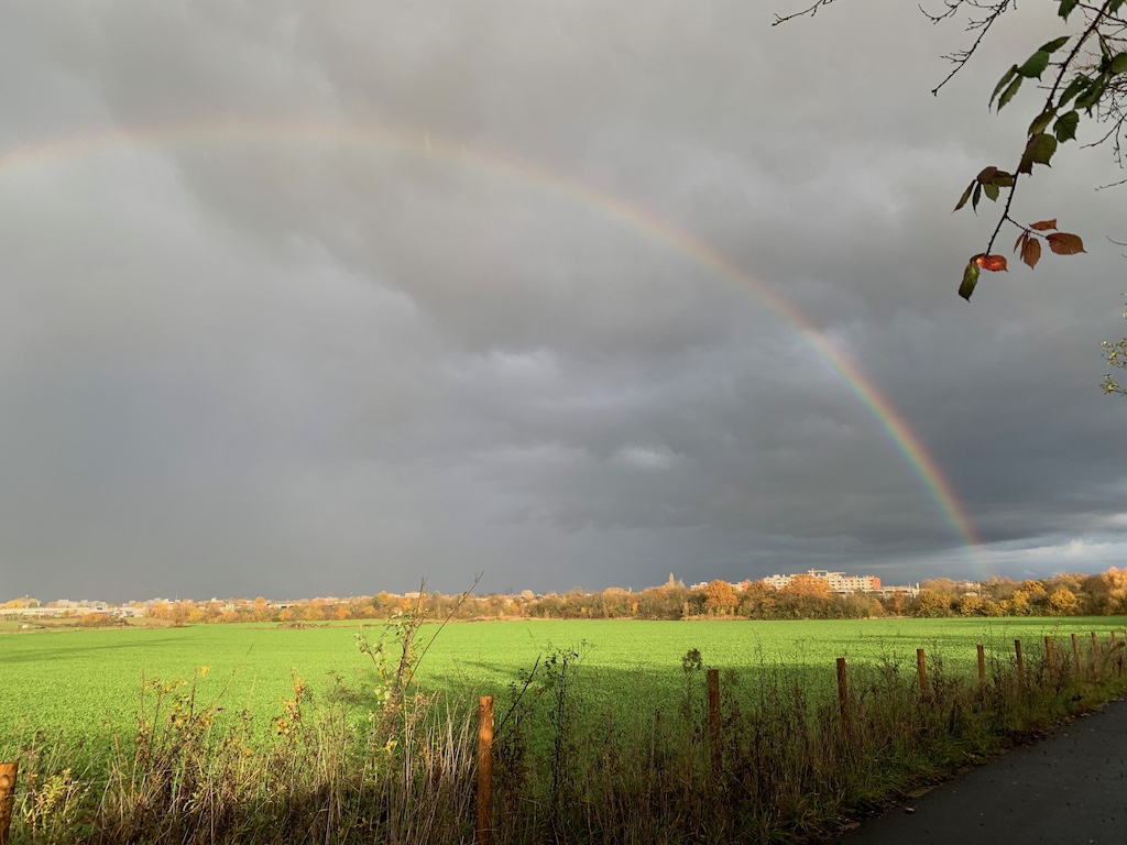 Schotterbeete sind deprimierend. Doch gibt es nichts, was sich nicht noch steigern ließe...Zwischen Alfter und Bonn-Dransdorf zauberte die Meteorologie einen beeindruckenden Regenbogen. Kurz darauf setzte ein Regenschauer ein, der das Gehglück nur geringfügig trübte.