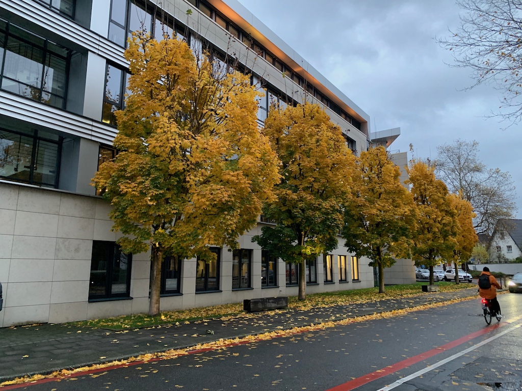 Montag: Morgens zeigte die Wetter-App Regen an, womit sie im Widerspruch zum Blick aus dem Fenster stand. Dort war zwar kein blauer Himmel zu sehen, aber auch kein Niederschlag oder diesen ankündigende dunkle Wolken. Vorsichtshalber nahm ich dennoch die Stadtbahn, schließlich leiste ich mir nicht Monat für Monat das Deutschlandticket, um mit nassen Hosenbeinen im Büro zu sitzen. Der Regen setzte dann erst bei Ankunft am Werk ein, ab Mittag hörte er auf, kurz zeigte sich die Sonne. Somit hätte der planmäßigen Radfahrt nichts entgegengestanden. Dafür kam ich außerplanmäßig in den Genuss eines Spaziergangs zurück, immer das Positive sehen, auch und gerade in diesenZeiten.