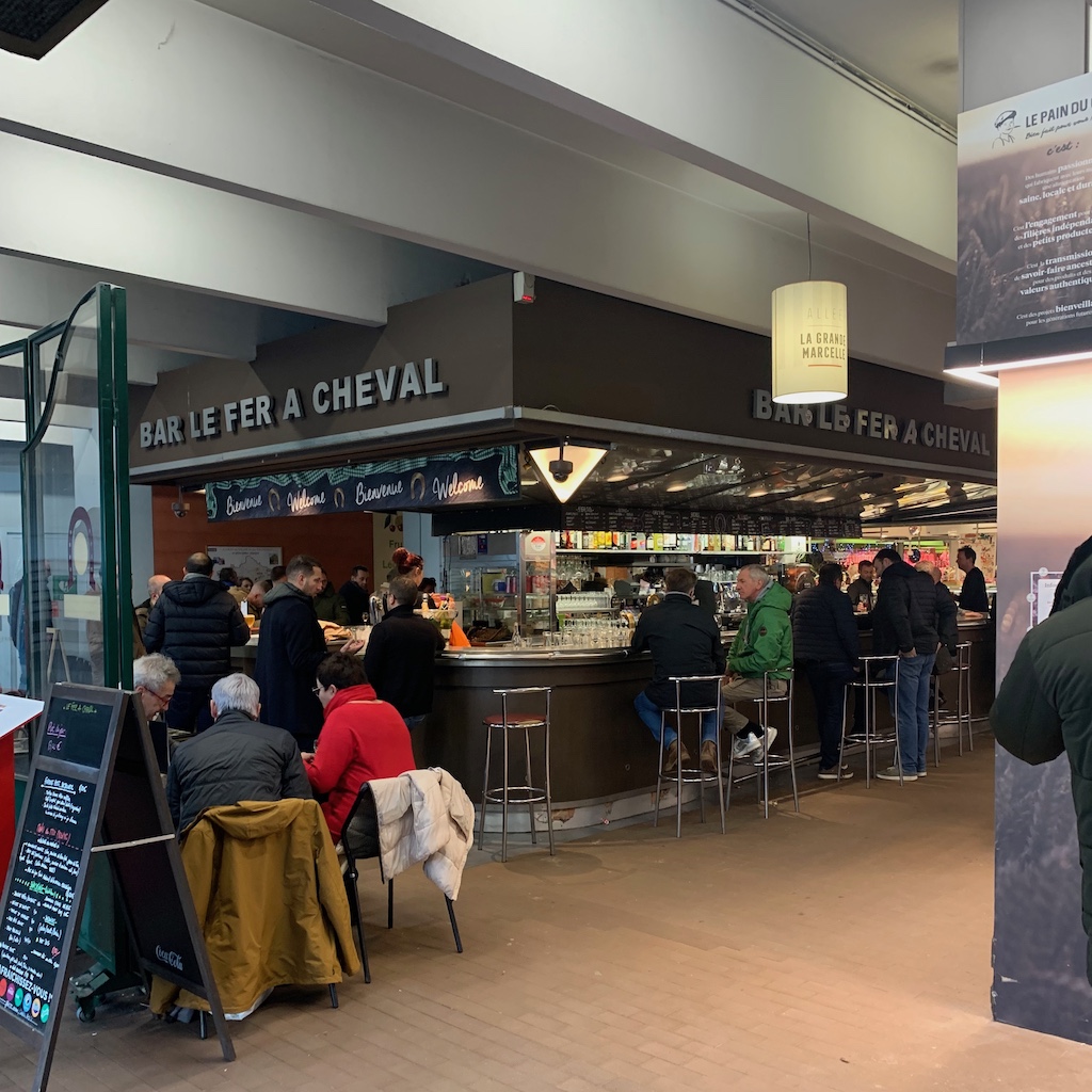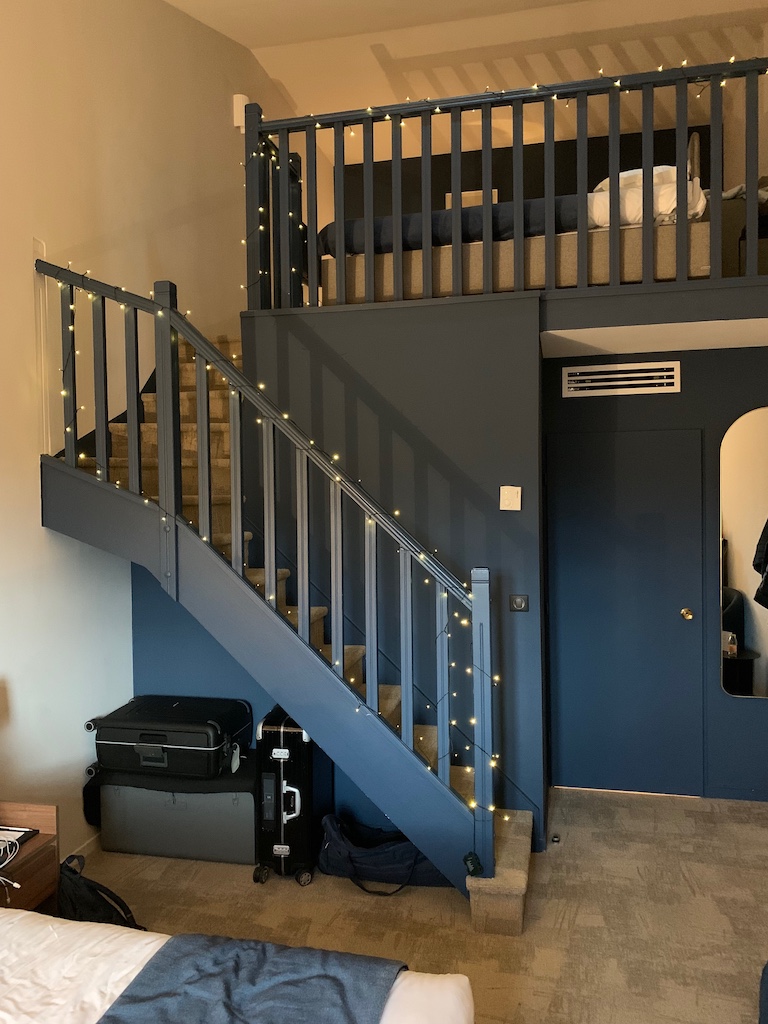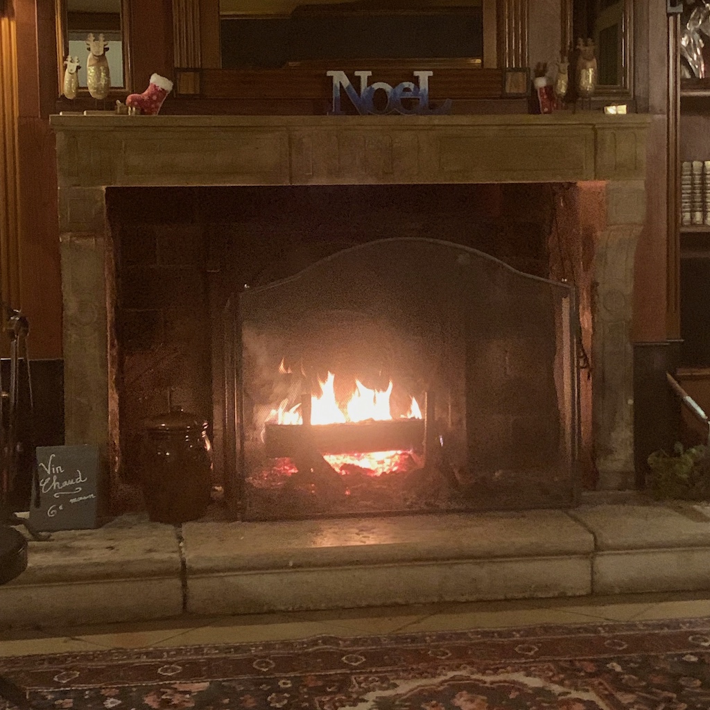 Nach dem Abendessen nahmen wir den letzten Vin Chaud à la maison in der Hotelbar. Der Inder hatte sich dort inzwischen über drei Sessel häuslich eingerichtet und wirkte weiterhin sehr zufrieden. Die Sitzgruppe gegenüber belegten ein Mann und zwei Teenagerjungs, letztere mit Alpaka-Frisuren. (Diese Bezeichnung für die aktuelle Haarmode junger Männer las oder hörte ich kürzlich irgendwo und finde sie sehr trefflich.) Gesprochen wurde fast nicht, alle drei waren intensiv mit ihren Datengeräten beschäftigt. Manchmal hielt einer dem anderen das Gerät vor die Nase, der grinste dann kurz und widmete sich wieder dem eigenen. Unterbrochen wurde ihr Tun durch einen zwischenzeitlich servierten Imbiss, der mit alternativen Tischmanieren vertilgt wurde, den Blick möglichst wenig vom Bildschirm abgewandt. Sie hatten auf ihre Weise Spaß, nehme ich an.