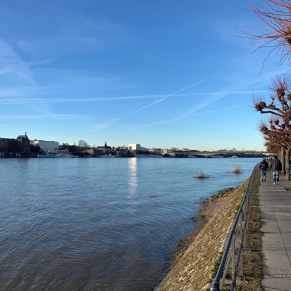 Nach entspannter und sonnenbeschienener Fahrt kamen wir am späten Nachmittag in Bonn an. Dort waren die letzten fünf Törchen des Adventskalenders „Edle Tropfen in Nuss“ abzuarbeiten, was der Ankunft eine gewisse Leichtigkeit verlieh. Zum Abendessen besuchten wir den persischen Lieblingsitaliener. Nach einer Woche mit französischer Küche ist eine Steinofenpizza auch mal wieder ganz schön.