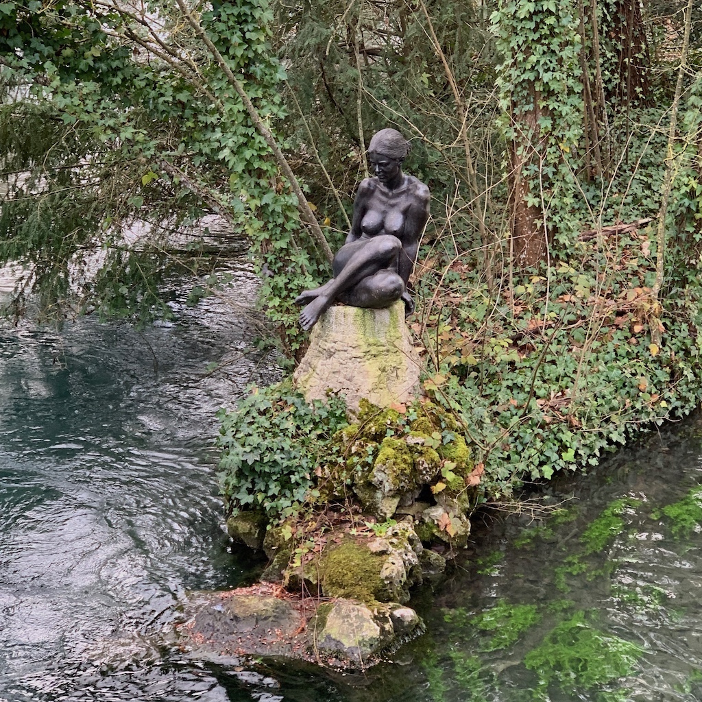 Nach dem Stadtbummel machten wir einen Spaziergang durch den nahegelegenen Parc de la Bouzaise, wo sich Blesshühner und eine Kleingruppe Gänse (neben graugemusterten Wildgänsen auch eine weiße, letztere vielleicht kurz zuvor dem Braten entkommen) vom Fest unbeeindruckt zeigten.