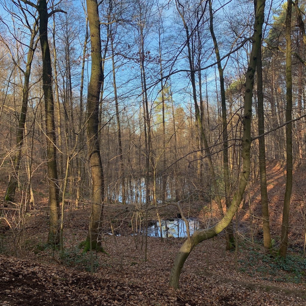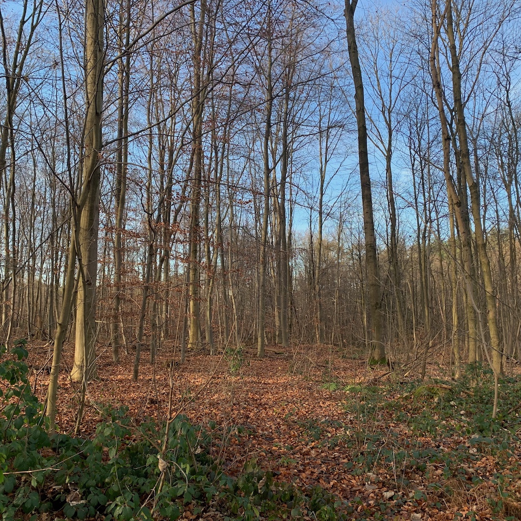 Freitag: Mittags brach ich auf zur Wanderung, wegen der jahreszeitlich beschränkten Tagesbelichtung nicht sehr lang. Mit dem Bus fuhr ich bis Holzlar, von dort wanderte ich bei Sonnenschein über den Ennert und den mir bislang unbekannten Finkenberg zwischen Küdinghoven und Beuel zurück nach Bonn. Unterwegs begegneten mir vergleichsweise viele Menschen, was am Brückentag zwischen den Jahren liegen mag, viele haben frei, zudem ist die Strecke stadtnah. Jedenfalls war es wieder beglückend, auch wenn die meisten Bäume kahl Winterschlaf halten. Immerhin zeigen sich Moose und Stechpalmen verlässlich dauergrün.
