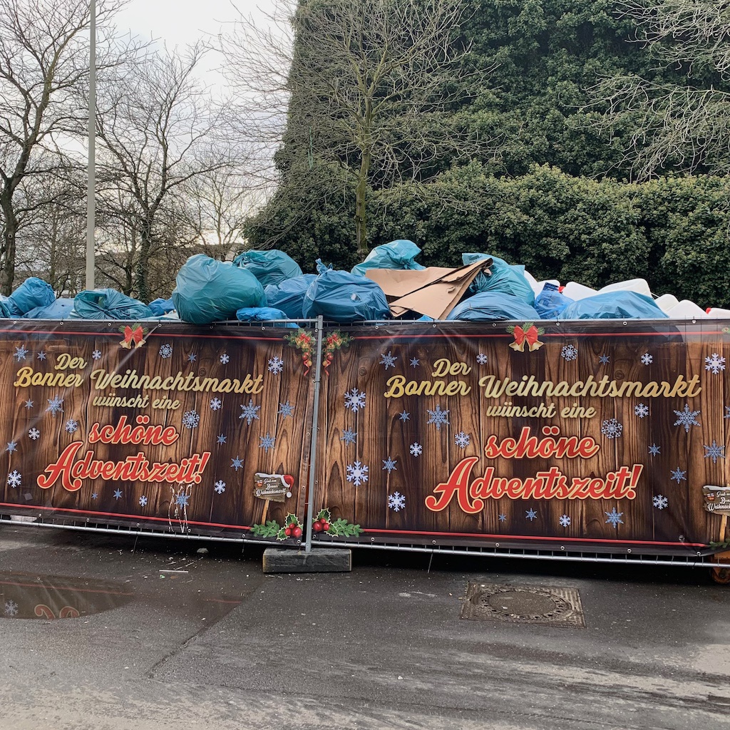 Nach Ankunft in der menschenvollen Bonner Innenstadt belohnte ich mich für die Mühen mit einer Feuerzangenbowle auf dem Remigiusplatz, wo der Weihnachtsmarkt erstmals in diesem Jahr ein paar Tage länger geöffnet bleibt und zum Dreikönigsmarkt wurde, irgendwie muss es ja heißen. Neben mir bestellte und bekam jemand einen Lumumba. Wir kürzlich zu lesen war, soll man das nicht mehr sagen, weil es wohl irgendwie rassistisch ist. Herrje. Ohne Zweifel halte ich es für richtig, nicht mehr Mohrenkopf oder Zigeunerschnitzel zu gebrauchen, auch wenn mir die Diskussion darum bisweilen etwas hysterisch erscheint. Aber Lumumba? Was kommt da demnächst noch? Vielleicht Granatapfel, Götterspeise, Russisches Brot oder Matjes nach Hausfrauenart? AfD und Freie Wähler werden sich freuen, fürchte ich.