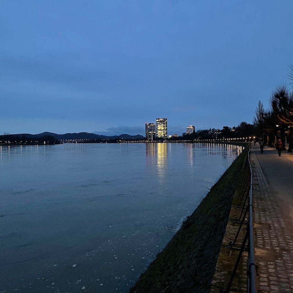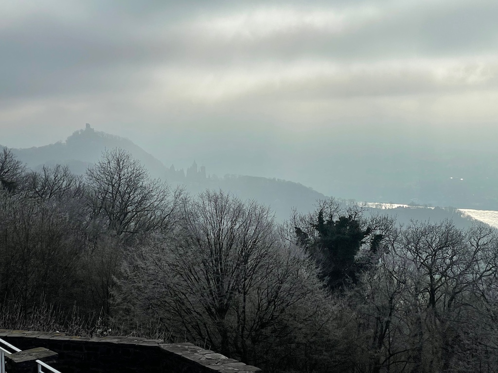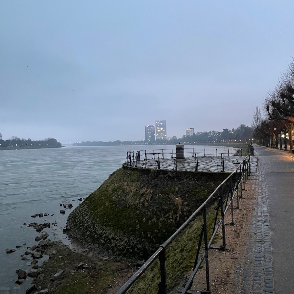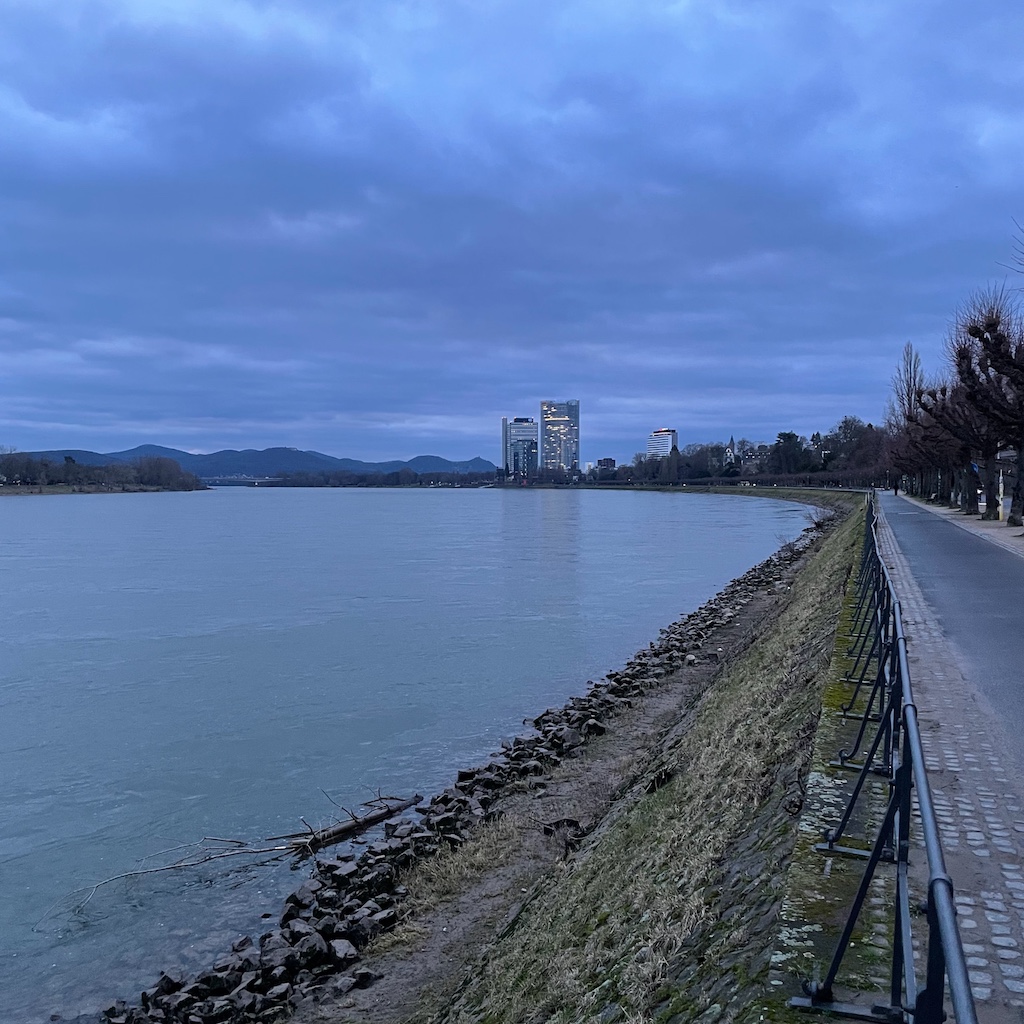 Nach dem Frühstück fuhren wir zurück nach Bonn. Die Sonne schien, die Autobahnen waren frei, ich konnte auf dem Rücksitz, im Auto stets mein Lieblingsplatz, einige Leserückstände aufholen. Am frühen Nachmittag trafen wir ein, so konnte ich noch einen Spaziergang machen. Der Frühling wirkt, oder wenigstens sein Vorbote: Über der Weststadt beobachtete ich eine Formation Kraniche in Richtung Norden ziehen. Auf den Balkonen leicht bekleidete Menschen, die baren Füße auf der Brüstung abgelegt, das Gesicht mit geschlossenen Augen der Sonne zugewandt. Auf der Wiese vor dem Poppelsdorfer Schloss lagen und saßen zahlreiche Studenten auf Decken. Während ich, nicht als einziger, noch die Winterjacke trug, immerhin mit geöffnetem Reißverschluss. Man weiß ja nie, was noch kommt.