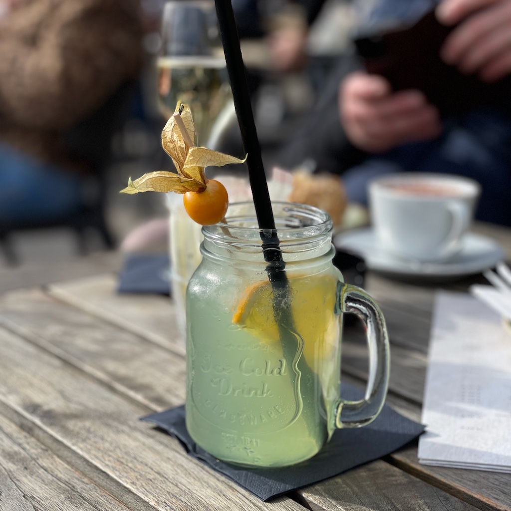 Es ist deutlich wärmer geworden. Daher nahmen wir nach der Markthalle und einer Runde durch den Park in einer gut besuchten Außengastronomie am Schlossgarten Platz, mit Blick auf die zahlreich vorbeigehenden Menschen, was immer wieder erhebliches Vergnügen bereitet. Während ich eine Limonade bestellte, näherte sich der Geliebte mit einem Glas Sekt schon wieder Gehaltvollerem an.