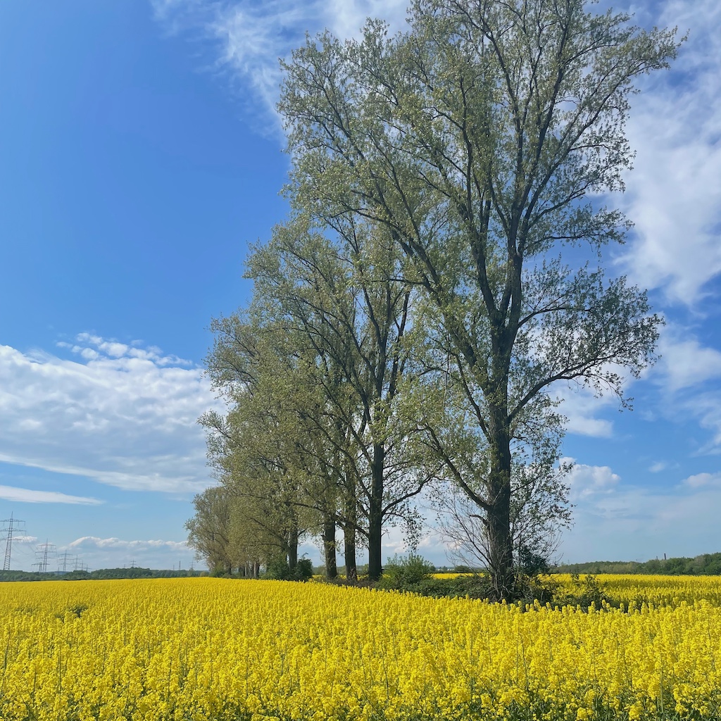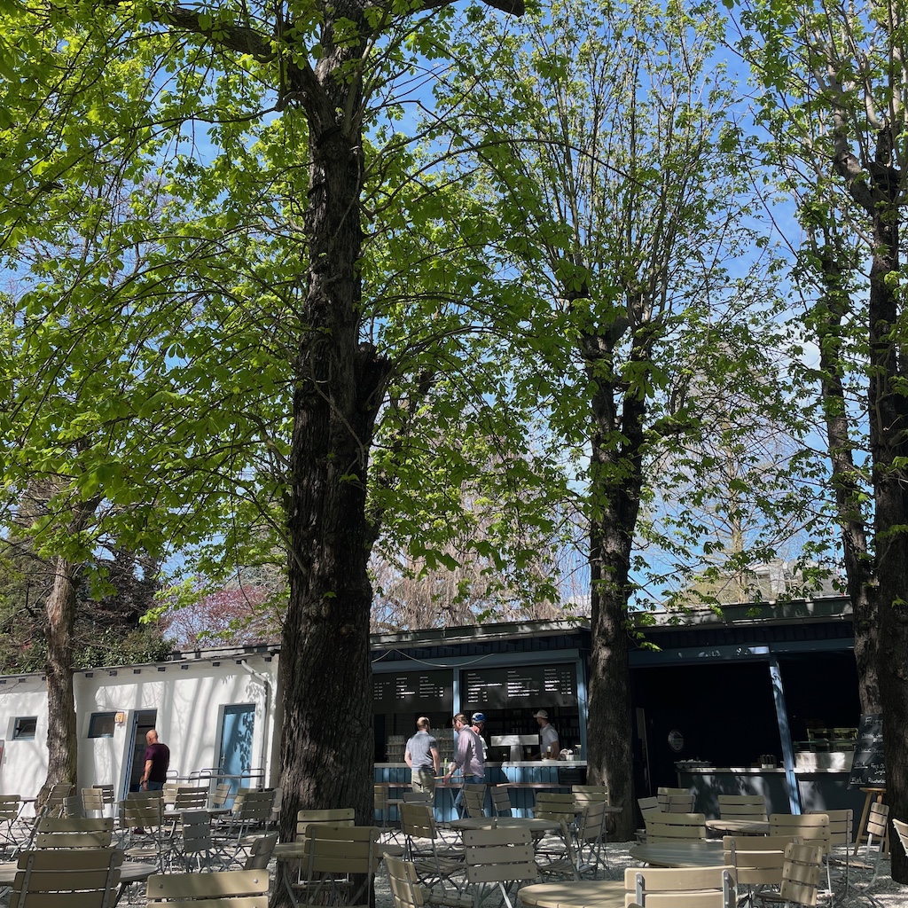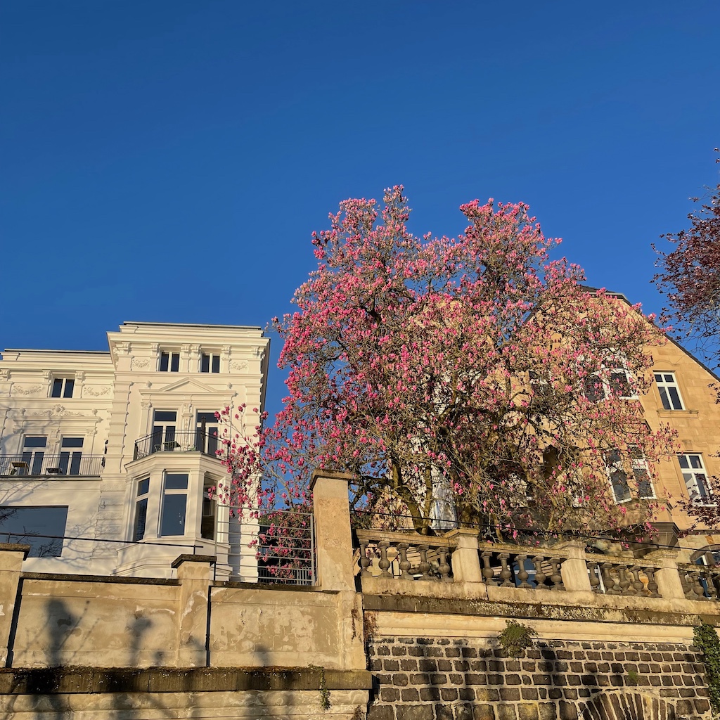 Im Übrigen war der erste Arbeitstag der Woche wenig montäglich. Er endete spät, weil eine Besprechung um eine halbe Stunde überzogen wurde und ich davon absah, zum vorgesehenen Ende die Runde zu verlassen; ich bin einfach zu nett. Angenehme Fußwege hin und zurück. Da auf dem Rückweg die Sonne schien, erlag ich den Verlockungen der Außengastronomie und entschädigte mich für den späten Feierabend.