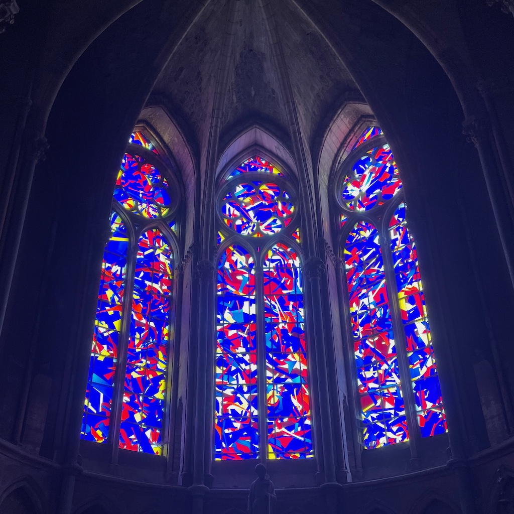In Reims besichtigten wir die örtliche Kathedrale, die (wenigstens mich) vor allem durch ihre bunten Fenster beeindruckt. Ansonsten gilt, was für alle derartigen Bauten gilt: Man muss der Kirche nicht nahestehen, um die Leistung zu würdigen, derartiges zu bauen, erst recht mit den damals zur Verfügung stehenden Mitteln.