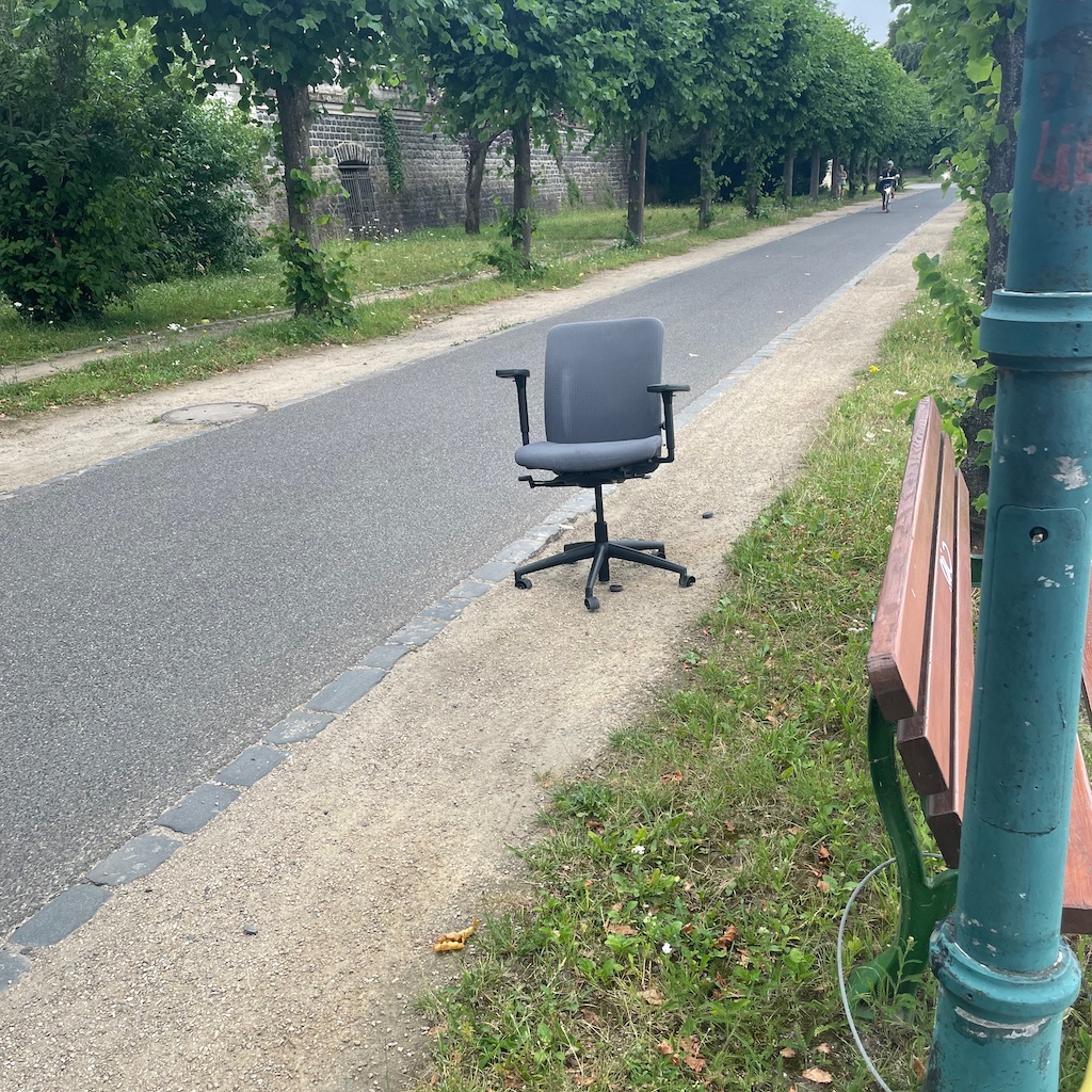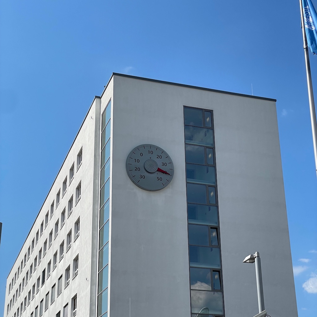 Nachmittags hatte ich einen Termin in einem anderen Gebäude unweit des Mutterhauses. Der Weg dorthin und zurück fühlte sich an, als würde ich von einem riesigen, unsichtbaren Fön auf höchster Temperaturstufe angeblasen. Um dem ganzen noch eine gewisse Absurdität zu verleihen, trug ich eine Fleecejacke im Unternehmesdesign mit mir für einen Fototermin, die dann doch nicht gebraucht wurde.