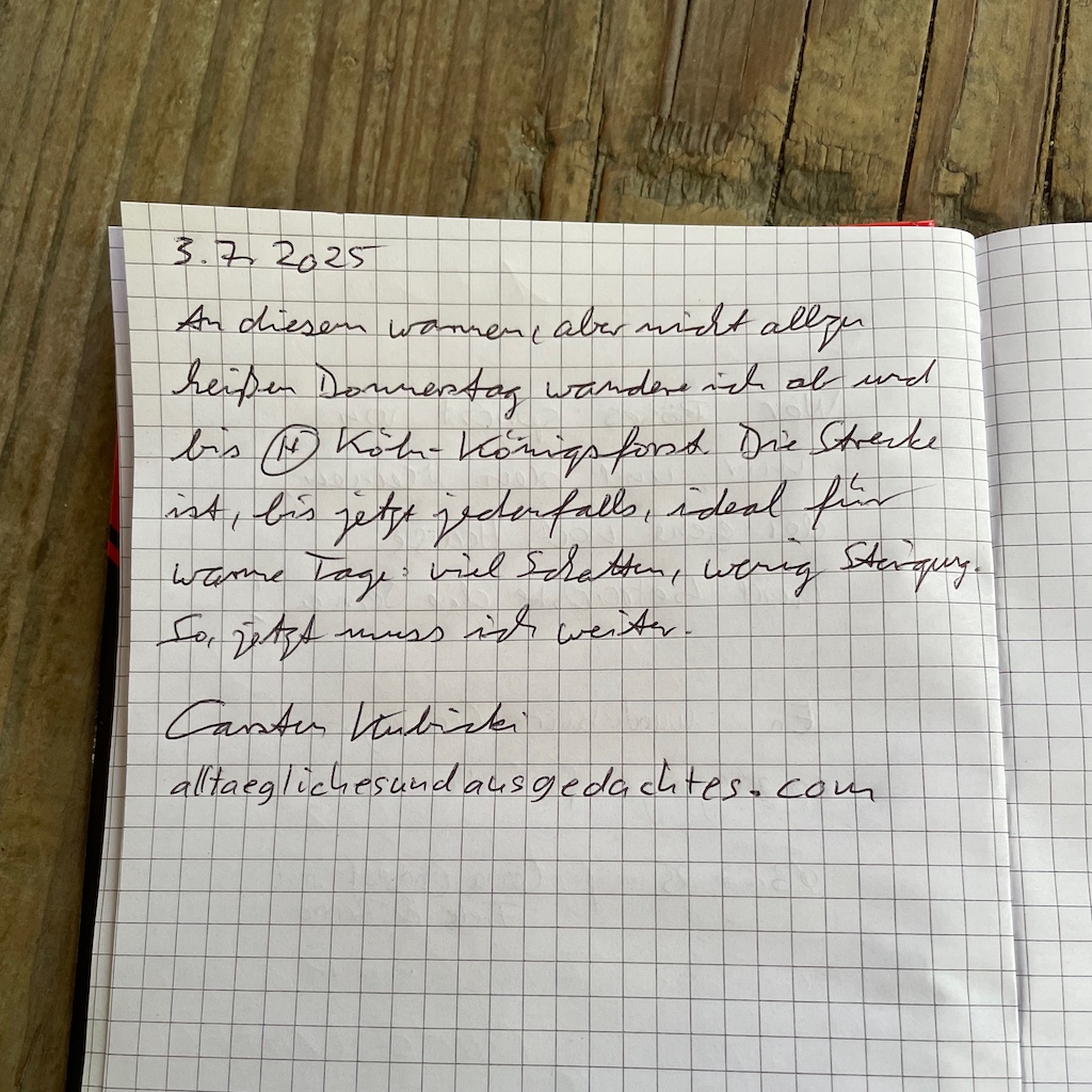 Am Vorabend brachte eine Kaltfront mit Gewittern, die um Bonn freundlicherweise herum zogen, eine gewisse Abkühlung, so wurde es heute nicht wärmer als fünfundzwanzig Grad: Wanderwetter. Das nutzte ich für eine Wanderung durch den (oder das?) Königsforst östlich von Köln, eine Tour, die mir die liebe Kollegin schon vor längerer Zeit empfohlen hat.