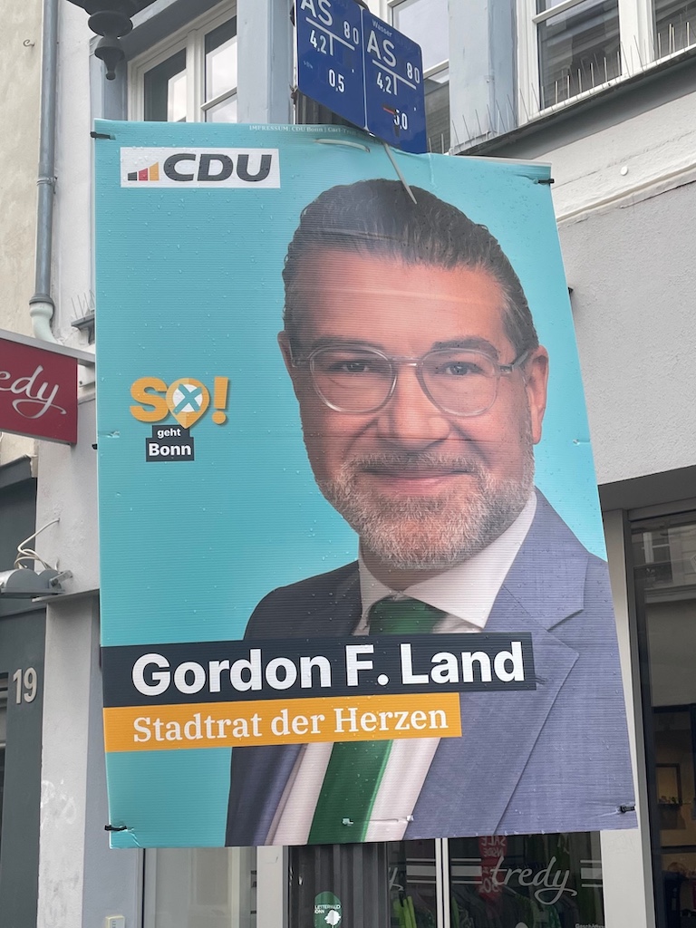 Rätselhaftes Wahlplakat – Was mag das Sternchen bedeuten?Allein schon wegen der Frisur und des eingeschobenen F. muss man ihn einfach ins Herz schließen