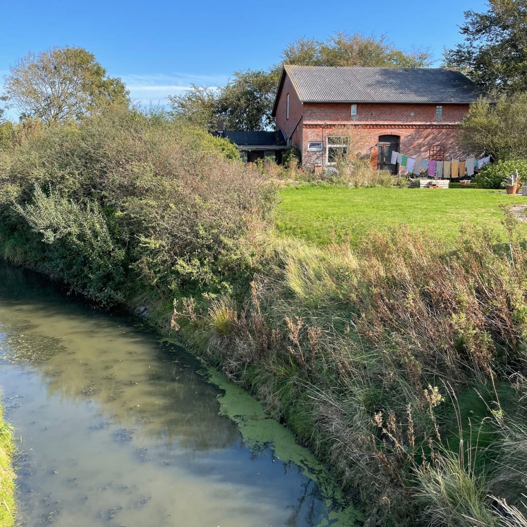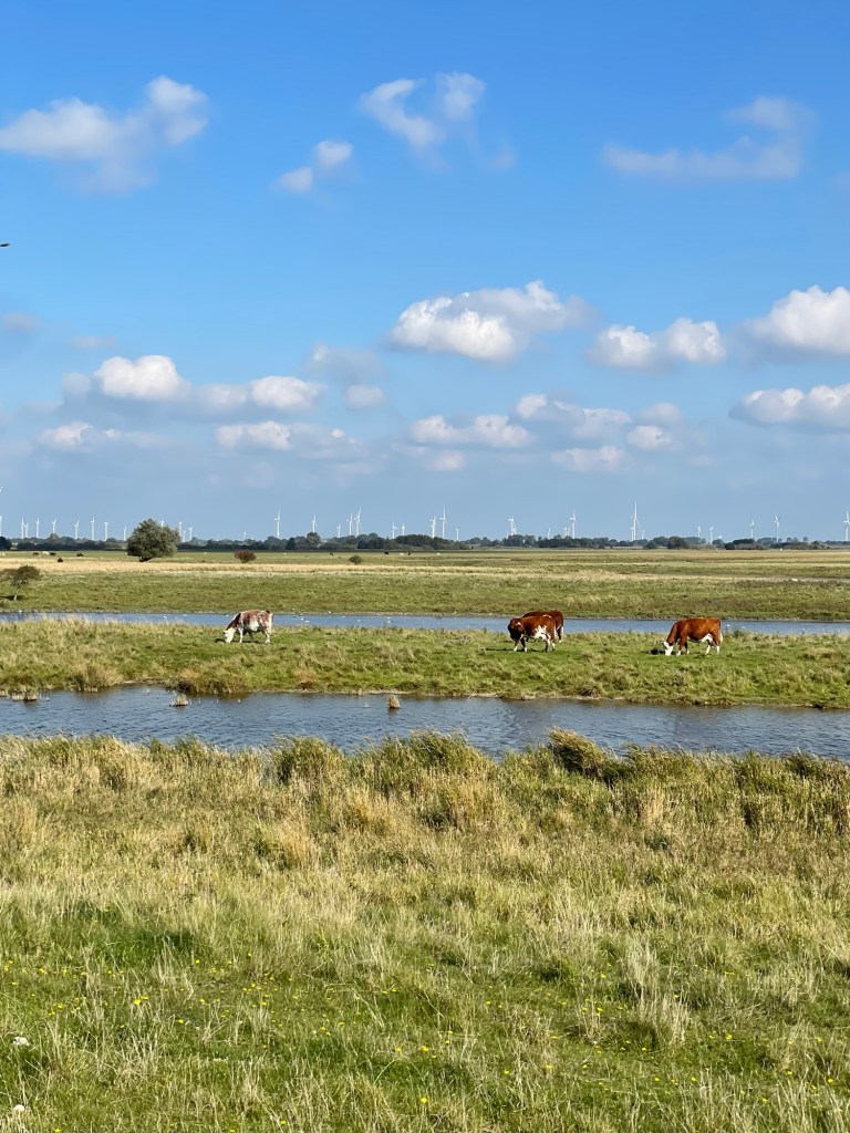 Wie stets auf Wanderungen, so auch hier: Sobald man eine gewisse Siedlungsdichte hinter sich gelassen hat, grüßt man einander bei der Begegnung, egal ob zu Rad oder zu Fuß. Hier mit dem üblichen „Moin“ zu jeder Tageszeit, was mir sehr sympathisch ist.