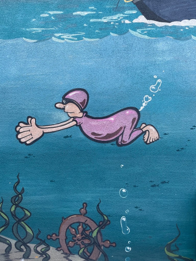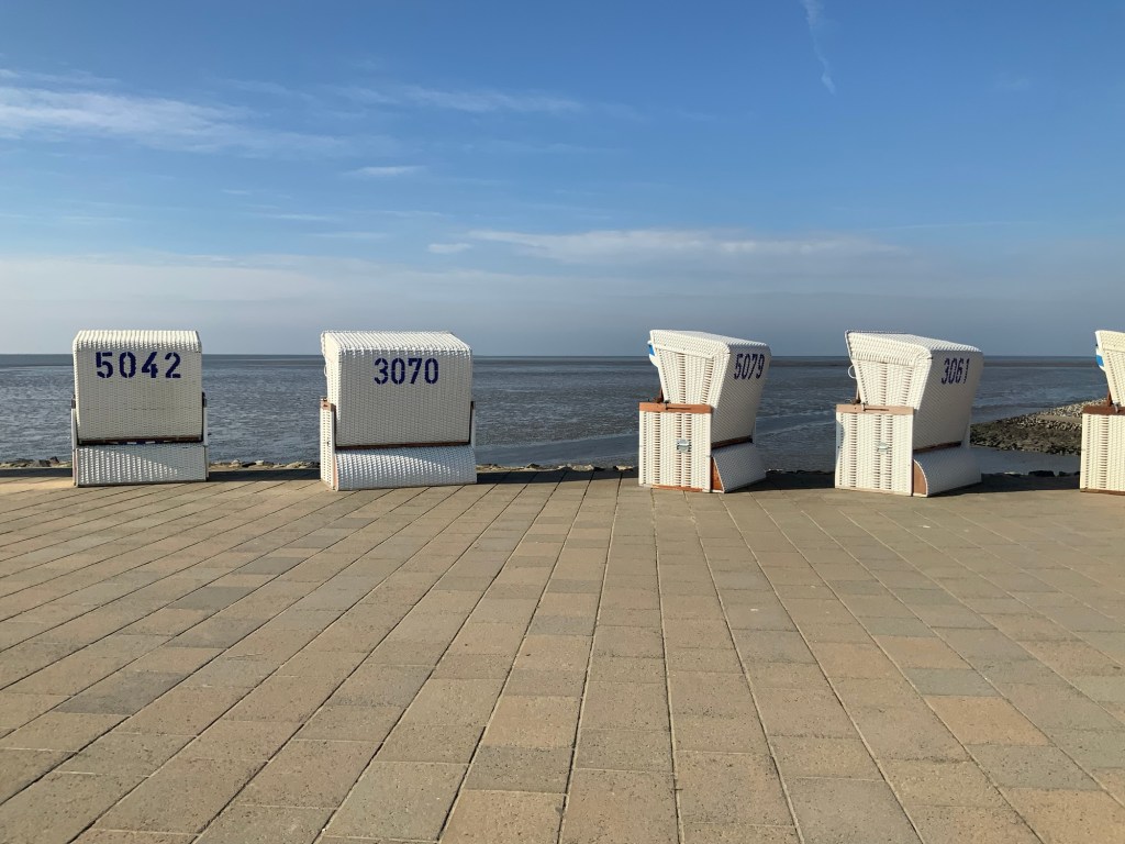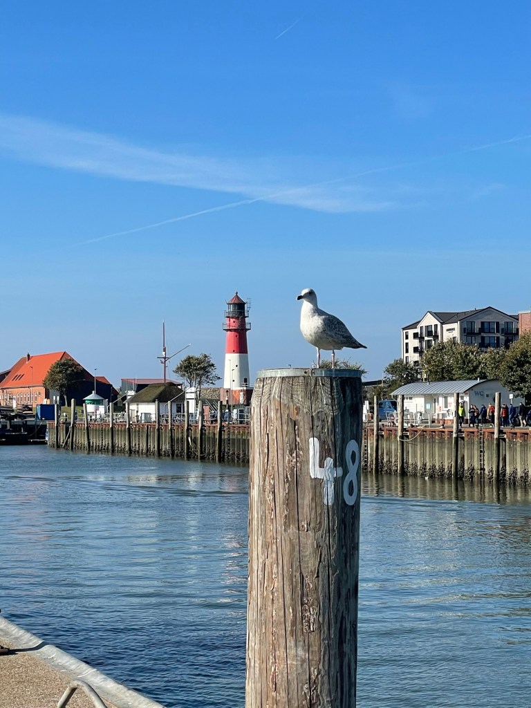 Büsum ist auch zu dieser Jahreszeit gut besucht. Der Altersschnitt ist gehoben, die Dichte an Rollatoren und Klapp-Telefonhüllen recht hoch. Ab einem gewissen Alter tragen einige Herren eine Mütze, die aussieht wie eine Baseballkappe, nur flacher und ohne Schirm, scheint was Regionaltypisches zu sein wie früher das Finkenwerder Fischerhemd, das ich zum Erstaunen in keinem Laden mehr gesehen habe. Vielleicht hätte ich mir nochmal eins gekauft.