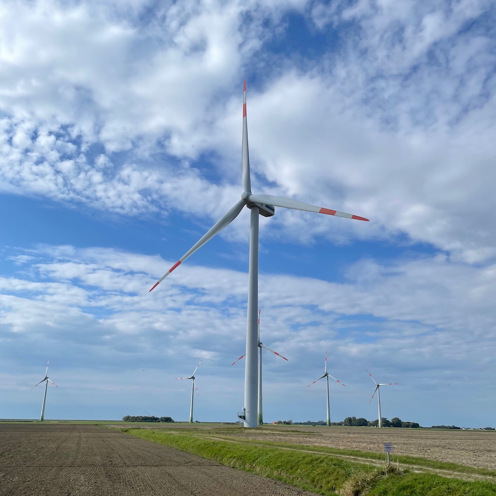 Erstmals kam ich den Windrädern richtig nahe, sonst sieht man sie ja immer nur beim Vorbeifahren mit dem Auto oder der Bahn. Dabei interessierte mich, welche Geräusche sie machen, die ja häufig, neben der Optik, als Argument gegen das Aufstellen genannt werden. Ja, man hört sie schon, ein gleichförmiges Flap – flap – flap im Takte der Rotorblätter. Andererseits nicht lauter als das Rauschen von Blättern bei Wind oder Meeresgetöse. Warum deshalb ein Mindestabstand zu Wohngebäuden einzuhalten ist, erschließt sich mir nicht.