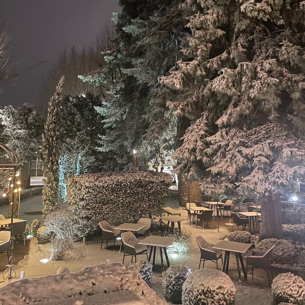 Es als ein Weihnachtswunder zu bezeichnen wäre wohl übertrieben, immerhin ein weiterer Wer-hätte-das-gedacht-Moment: Passend zum Heiligen Abend begann es abends zu schneien. Als wir das Restaurant verließen, lag das Draußen in Weiß gehüllt, das war schön.