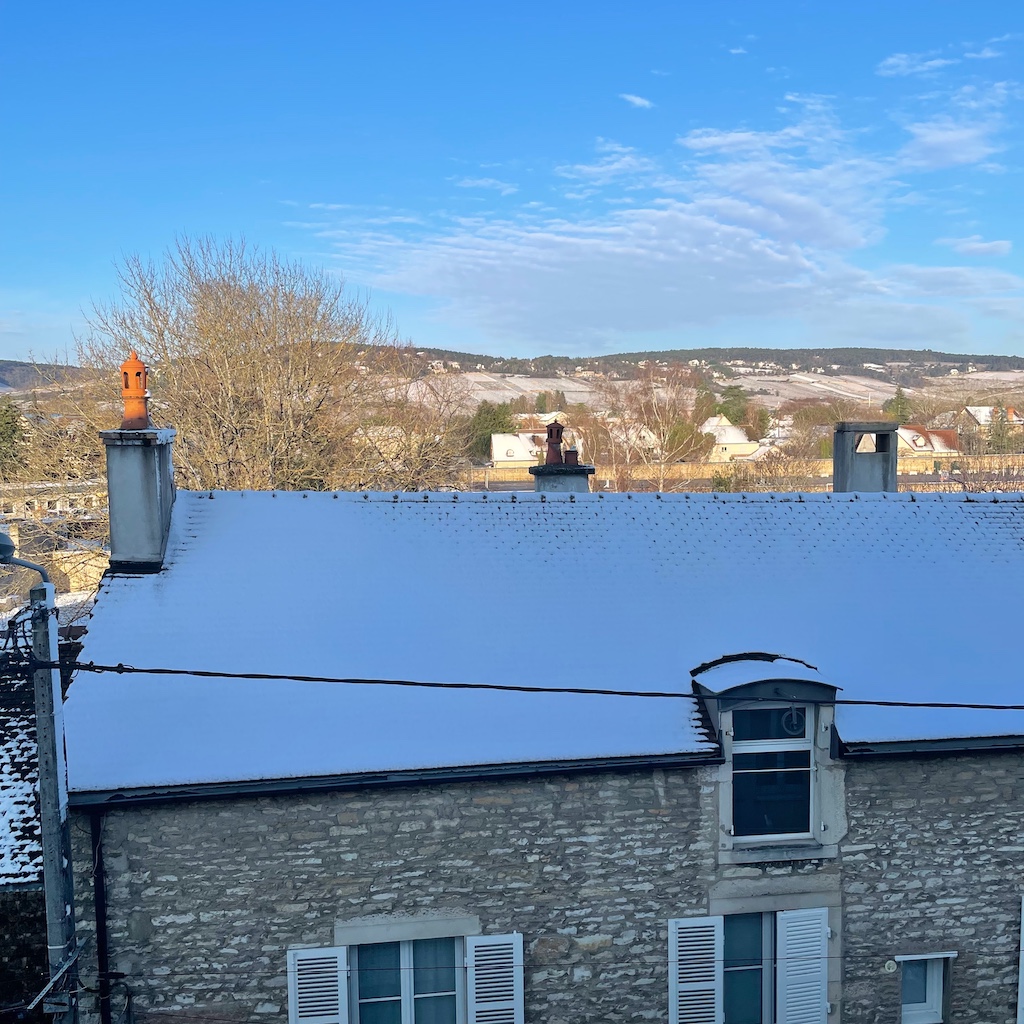 Die kam indes erst nachmittags, als wir einen Ausflug nach Rully unternahmen, von wo wir mit einigen Flaschen Cremant mehr zurückkehrten, was soll man machen. Unterdessen liegen die Weinberge und -felder blätterlos, überall steigen Rauchwolken auf von den Feuern, in denen der Rückschnitt der Reben verbrannt wird, auf dass auch der kommende Jahrgang ein guter wird, mit dem sich gerade hier im Burgund immer noch erstaunliche Preise erzielen lassen. Wer weiß, wie lange es noch dauert, bis der Genuss von Wein verpönt ist. Zu recht, Alkohol ist ein Zellgift, erwiesenermaßen in jeder Menge und Darreichungsform schädlich für den Körper. Dennoch hoffentlich nicht so bald.