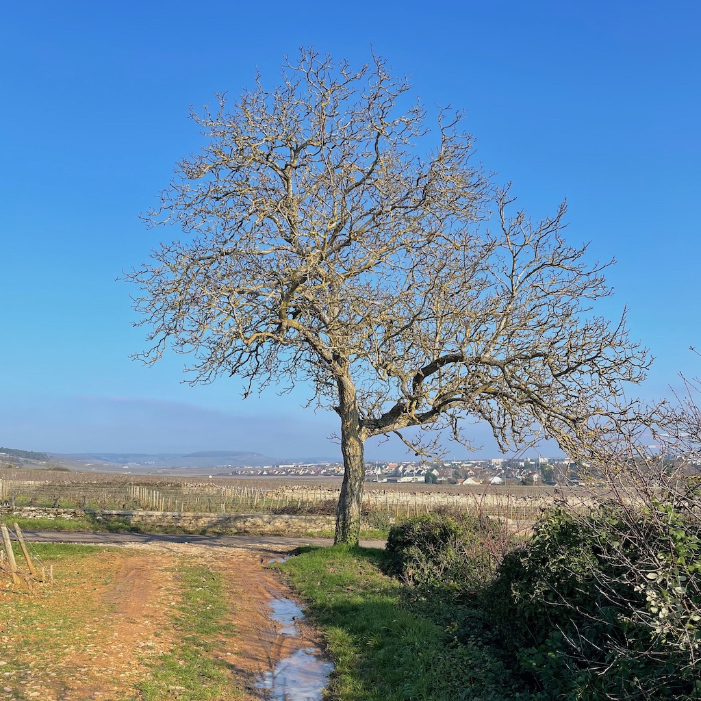 Freitag: Auch heute, am letzten Tag vor der Abreise, ergab sich für mich Gelegenheit für une promenade durch die Weinberge und über den Hügel westlich oberhalb von Beaune. Die Luft war kalt, der Himmel blau, hier und da lag in den beschatteten Ecken noch etwas Schnee.