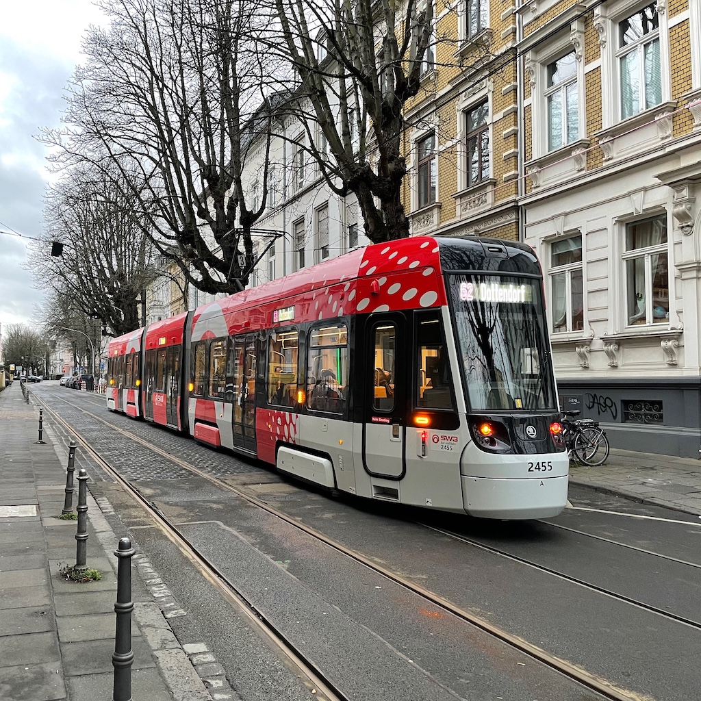 Erstaunlich wenig Pyromüll lag auf den Straßen, vereinzelte Holzstäbe abgebrannter Raketen und nur eine einzige leergeschossene Papp-Batterie sah ich statt der erwarteten flächendeckenden Vermüllung wie in den Vorjahren. Entweder waren die Mitarbeiter der Stadtreinigung schon früh sehr fleißig gewesen oder die Leute haben ihr Zeug anschließend selbst entsorgt, was kaum vorstellbar ist. Wie es am Rheinufer aussah, weiß ich nicht, weil mein Weg dort heute nicht entlangführte.