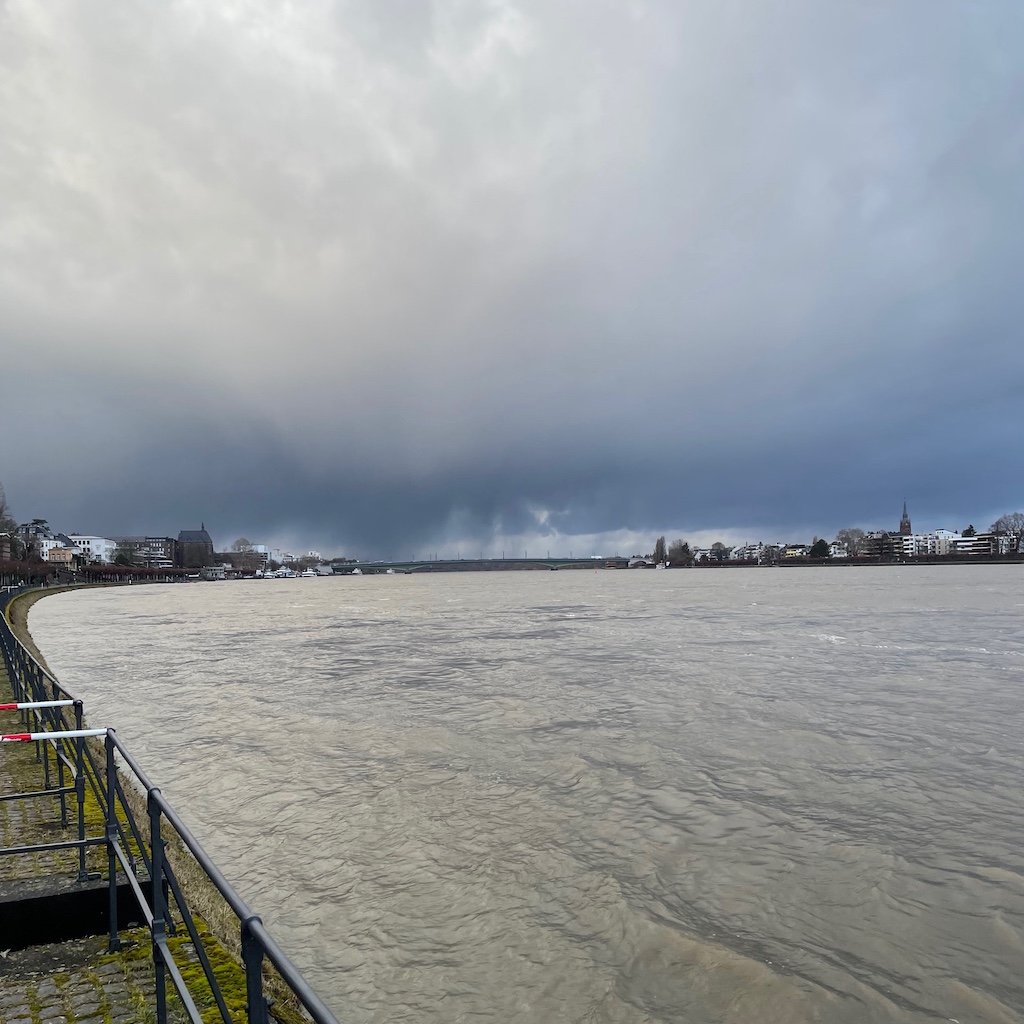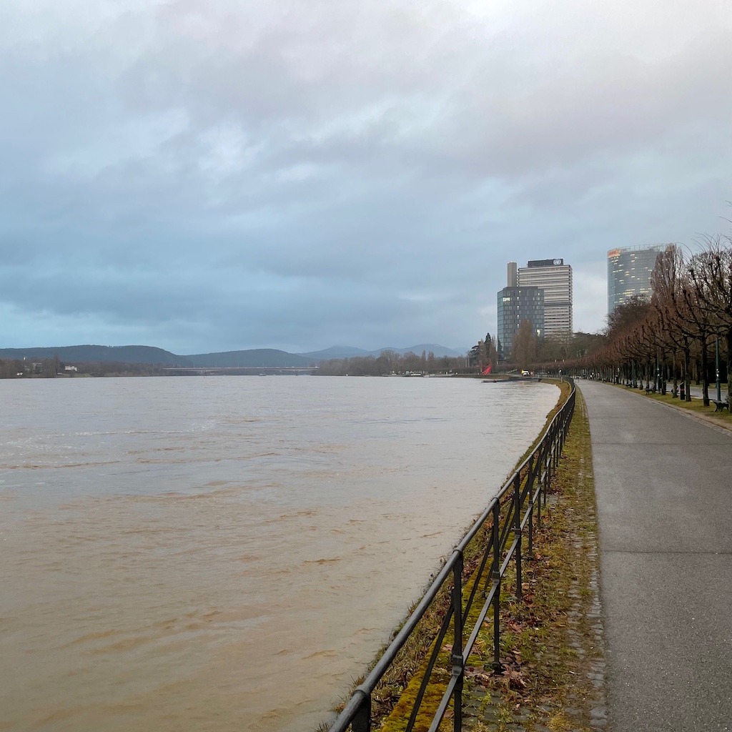 Anschließend unternahm ich bei nahezu frühlingsmilder Temperatur, von Vogelgesang begleitet, einen Spaziergang bis nach Graurheindorf und am Rhein entlang zurück. Die Begrünung der Bäume lässt noch auf sich warten, so langsam muss mal ein Schlussstrich unter den Winter gezogen werden, finde ich. Immerhin setzte der Regen aus, erst während des letzten Viertels der Runde fielen ein paar Tropfen, die mit dem Schirm problemlos abzuwehren waren.