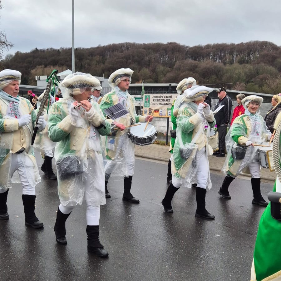 Montag: Anlässlich des Rosenmontags wurde der freie Tag dieser kleinen Woche auf heute vorverlegt. Die aktive Karnevalssaison endete für mich mit der Teilnahme unseres Musik-Corps am Zug in Wachtberg-Niederbachem. Der erwartete Regen begann pünktlich mit Start des Umzugs, er fiel zum Glück nur kurzzeitig, anschließend ließ sich sogar die Sonne blicken. Dank Regenschutzhülle konnte er die Stimmung nicht wesentlich senken. Störender war unsere Platzierung direkt hinter einem Wagen, der die Umgebung aus großen Lautsprecherboxen mit Karnevalsmusik der nach meinem persönlichen, unmaßgeblichen Empfinden eher üblen Sorte beschallte. Das erschwerte uns das Spielen, auch dürfte für die Zuschauer am Straßenrand die Mischung aus Wackelkontakt und Ruetz-Marsch wenig erbaulich gewesen sein. Nach gut zwei Stunden war auch das überstanden. Das war es dann, in neun Monaten geht es wieder los. Ob schon oder erst, mag jeder für sich bewerten.