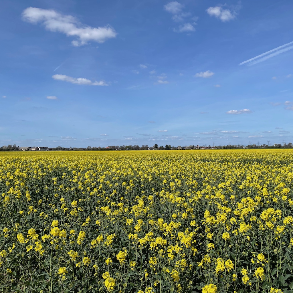 Am Freitag habe ich mich bei einer Wanderung auch über ein blühendes Rapsfeld gefreut.