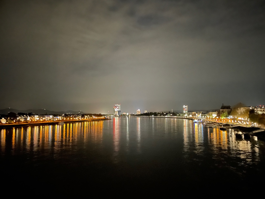 Zum Abendessen suchten wir die andere Rheinseite auf. Zurück sah es so aus: