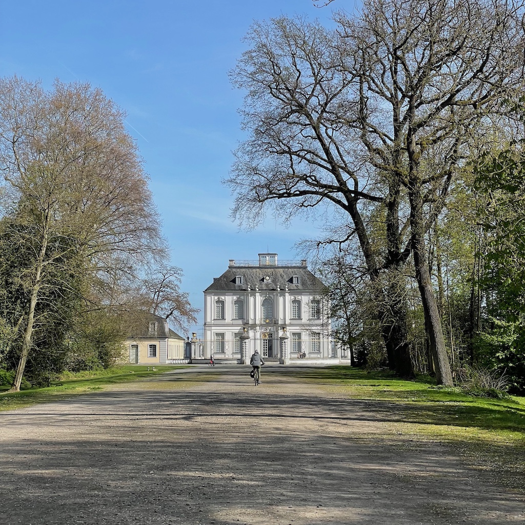 Ziel unserer Tour waren die Brühler Schlösser Augustusburg und Falkenlust. Ersteres besuchte und besichtigte ich letztmals vor schätzungsweise fünfundzwanzig Jahren, zweiteres noch nie. Wie das so ist, wenn man so etwas gleichsam vor der Haustür hat. In der Außengastronomie bei Schloss Falkenlust stärkten wird uns: ich mit Weißbier, der Liebste mit einem Cappuccino. Er war schon immer der Vernünftigere von uns.
