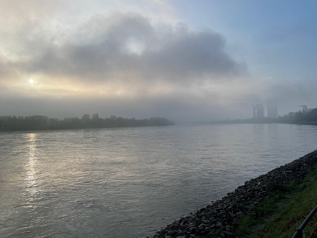 Dienstag: Morgens beim Fußweg ins Werk lag Nebel über dem Rhein, im Laufe des Tages zeigte sich das Wetter wieder frühlingsfreundlich. Die ewige Baustelle am Rheinufer lässt leichte Fortschritte erkennen.
