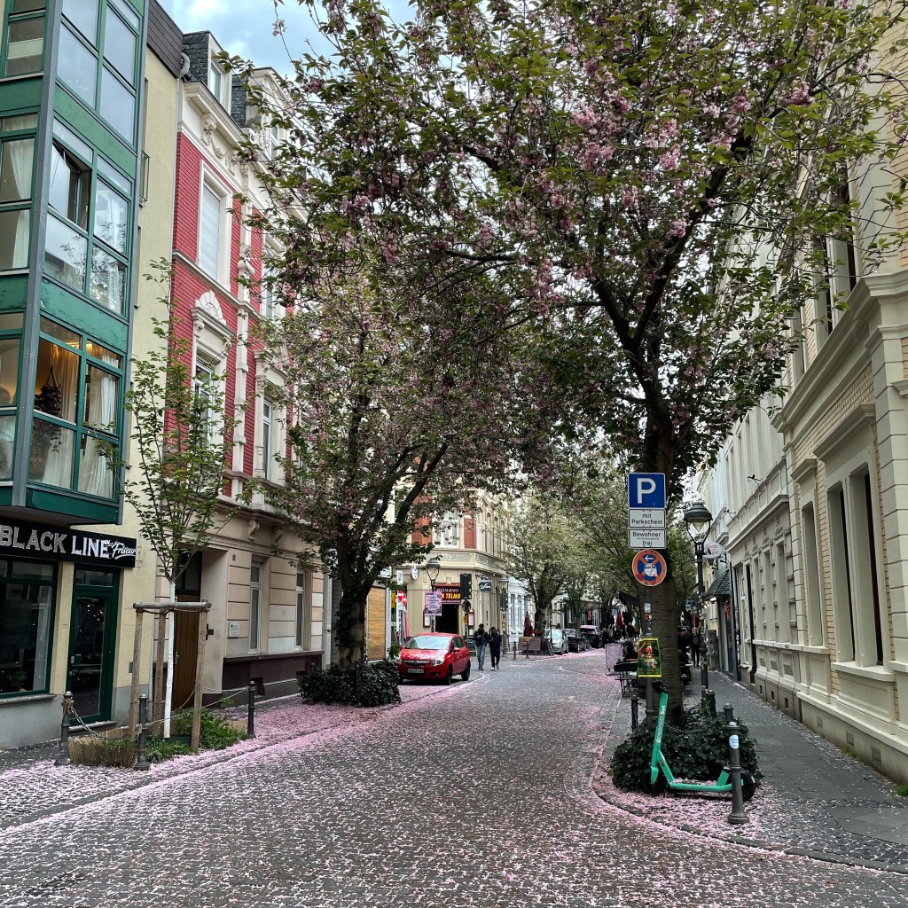 Nachmittags herrschte in der Bonner Innenstadt Verkehrschaos, weil eine Autobahn gesperrt ist und eine Rheinbrücke für die nächsten Jahre, bis zu ihrem Abriss und Neubau, nicht mehr von LKW und Bussen befahren werden darf. Dazu wurde intensiv gehupt, weil das bekanntlich immer hilft. Als Radfahrer ist man klar im Vorteil, als Fußgänger sowieso.